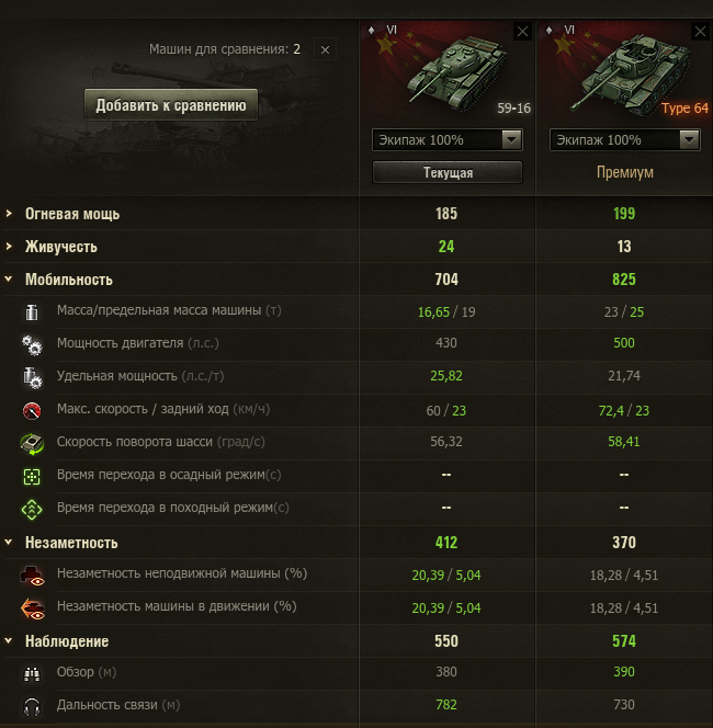 Монах окстись и иди в свой монастырь. А здесь форум, где мнения бывают разные. С мобильностью проблем не было на 64, да и фишка у него другая. А вот 59-16 с максималкой 60 доставляет проблем, особенно когда надо убегать от другой ЛТ/СТ или когда надо быстро занять позицию. http://cdn-frm-eu.wargaming.net/wot/ru/uploads/monthly_02_2017/post-258515-0-87734700-1487405161_thumb.png Да с незаметностью был немного не прав, посмотрел с более прокаченным экипажем. Но эти небольшие различия лекго покрывает возможность быстрее выйти на позицию и больше увидеть, а после возможность нанести урон, и совсем после выйти в плюс по серебру. Ещё есть маленький бонус с УВН. По итогу, как свет лучше и стабильнее (по результатам) тайп. Проходимость и маскировка лечится экипажем и модулями.