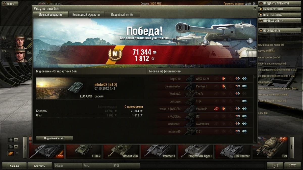 В игре сказано, что медаль "Дозорный" присуждается игроку, по разведданным которого членами его команды было повреждено не менее 6-ти танков противника. При равном количестве поврежденных танков, а также при получении разведданных от разных игроков, приоритет у того, кто получил больше очков опыта. Вопрос, почему мне ее не дали, если по моим разведданным было повреждено 7 противников: АМХ 13-75 - 621 оч., Panther II - 171 оч., Т26Е4 - 131 оч., VK4502P - 1735 оч., ИС - 1230 оч., GWPanther - 410 оч., С-51 - 112 оч. Из командного результата видно, что больше всего очков опята получил я. Вопрос - где медаль? http://cdn-frm-eu.wargaming.net/wot/ru/uploads/monthly_10_2012/post-2540022-0-46838300-1349576516_thumb.jpg http://cdn-frm-eu.wargaming.net/wot/ru/uploads/monthly_10_2012/post-2540022-0-95111000-1349577346_thumb.jpg http://cdn-frm-eu.wargaming.net/wot/ru/uploads/monthly_10_2012/post-2540022-0-05429300-1349577225_thumb.jpg http://cdn-frm-eu.wargaming.net/wot/ru/uploads/monthly_10_2012/post-2540022-0-01943200-1349577238_thumb.jpg