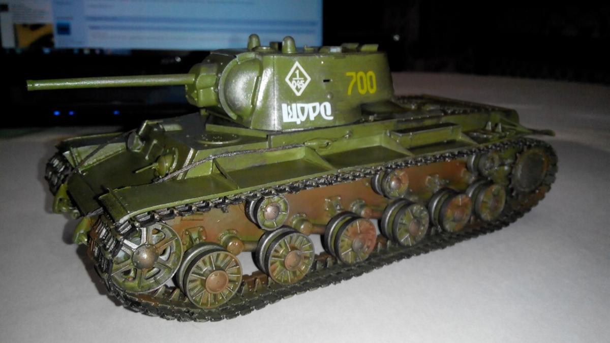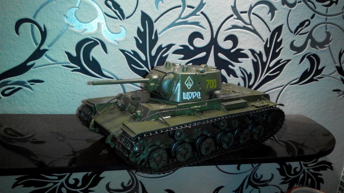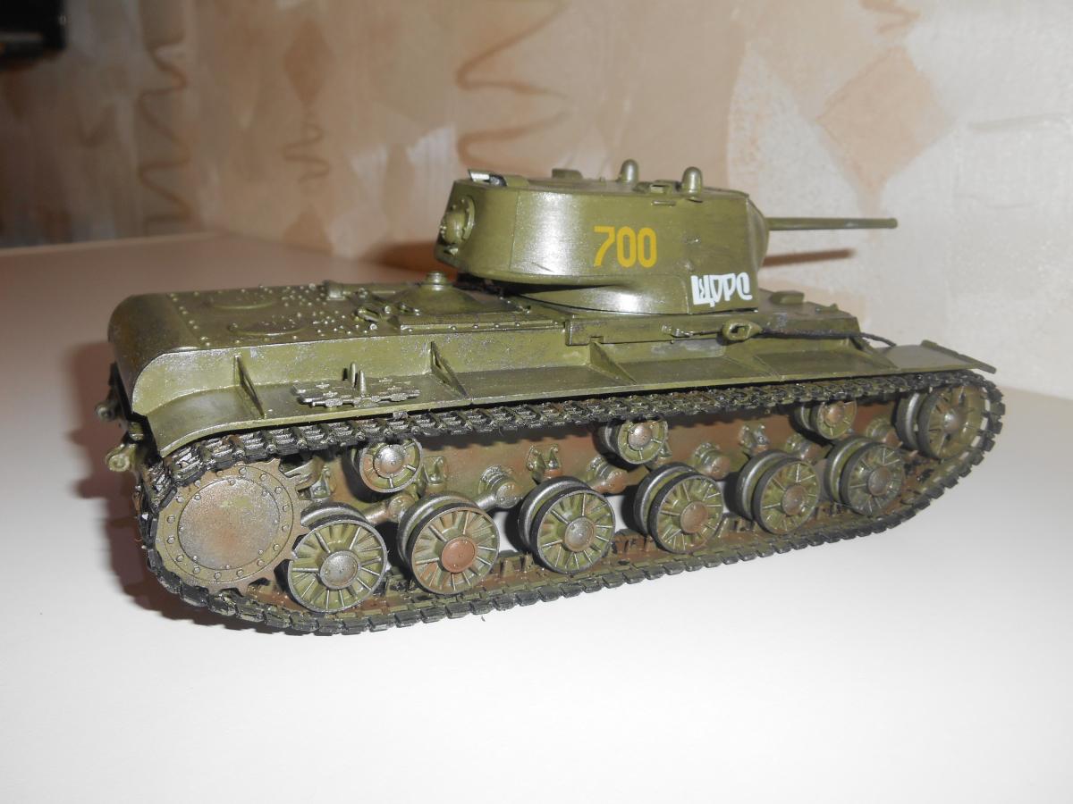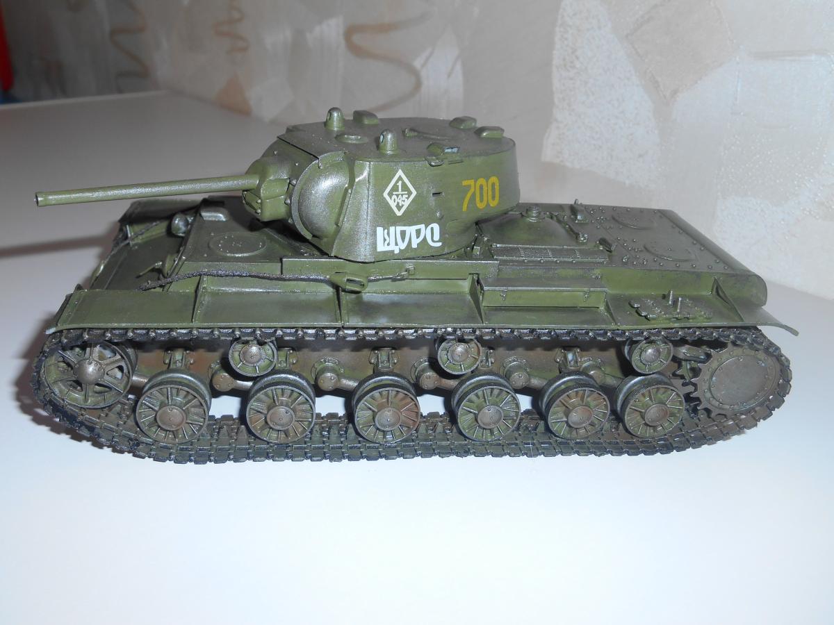 Советский тяжелый танк КВ-1. Модель 1942 года. Фирма Моделист, масштаб 1/35. Первый опыт в моделировании. Покрашен кистью