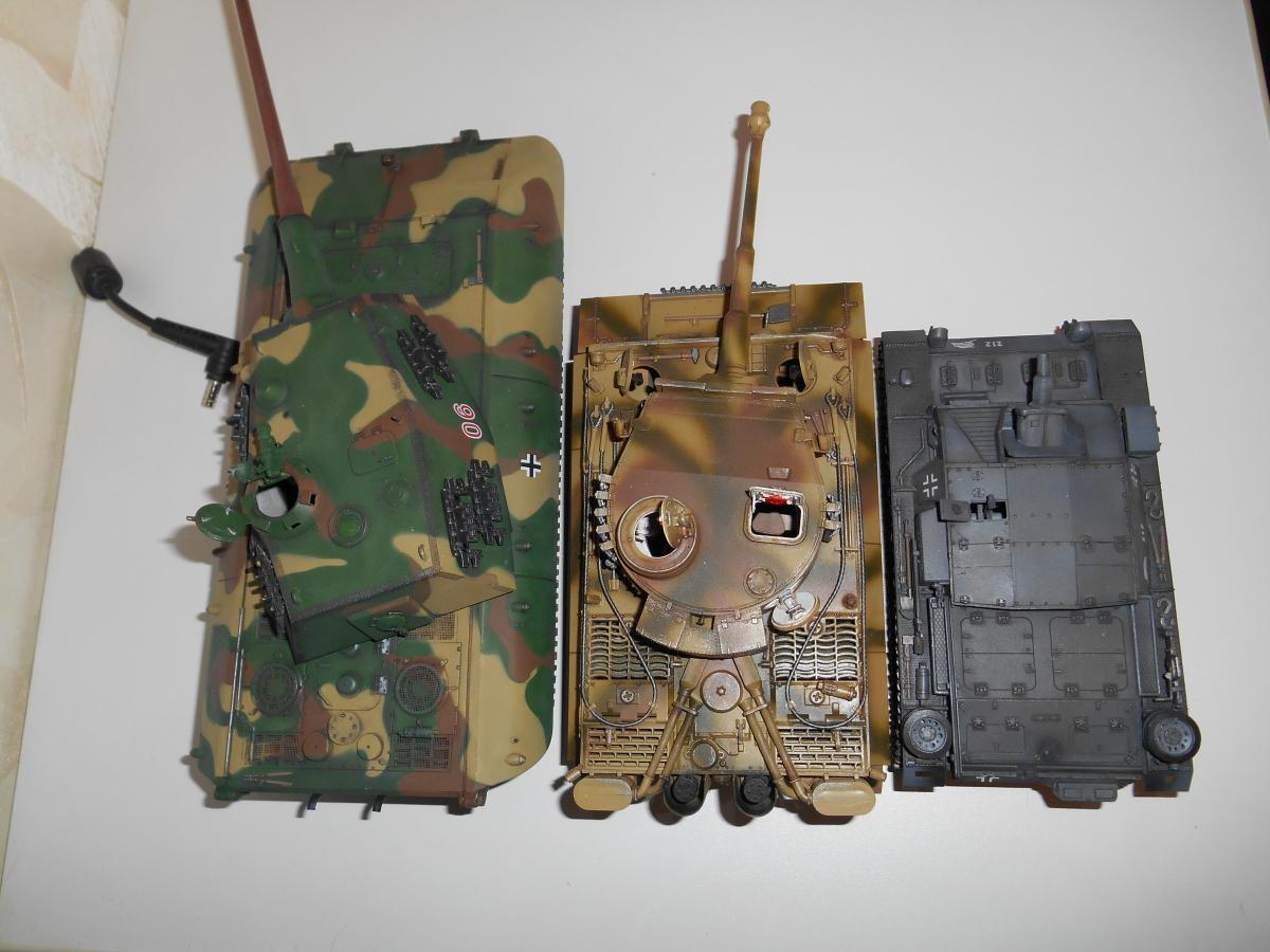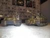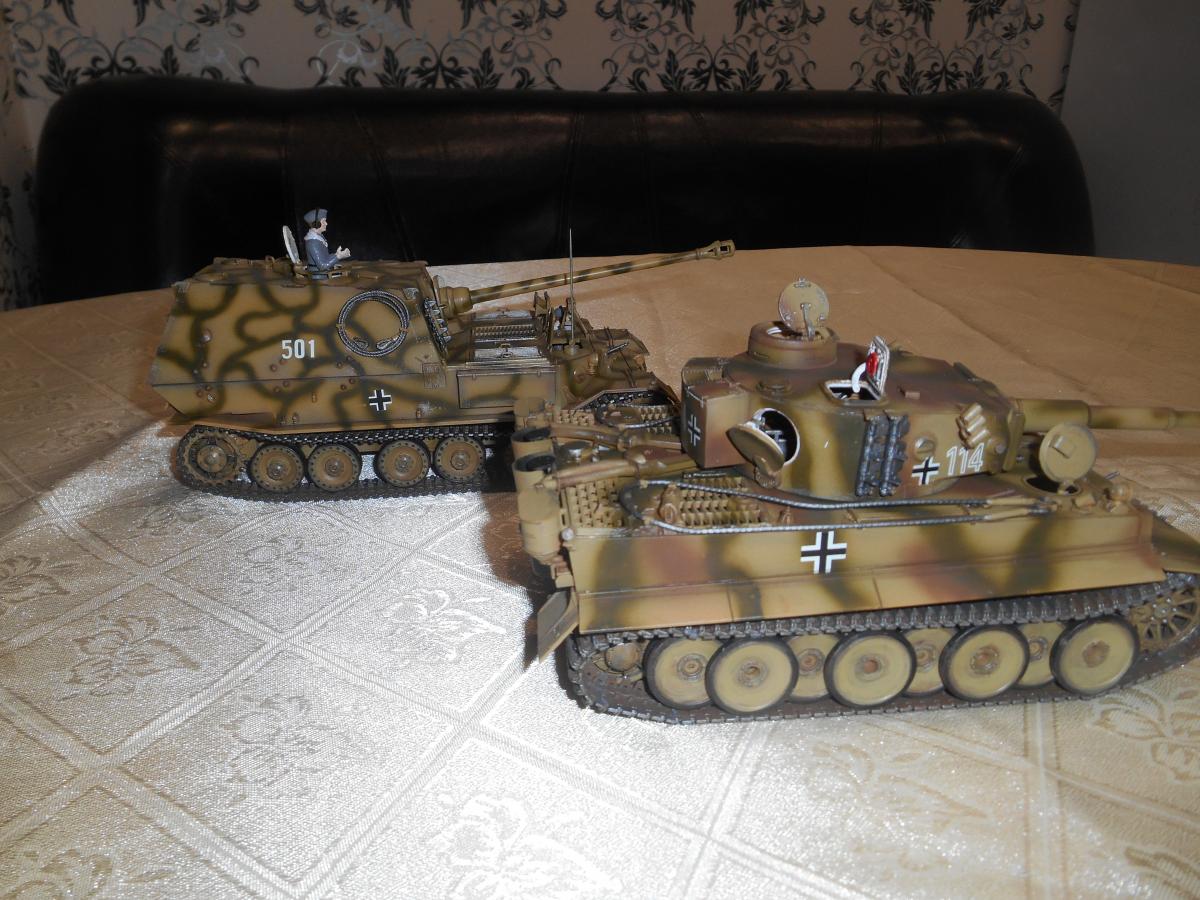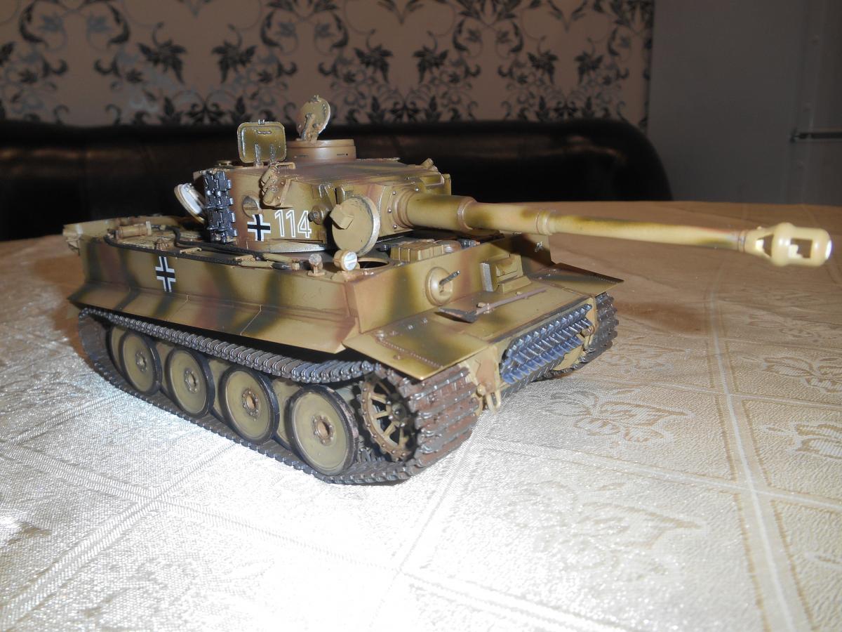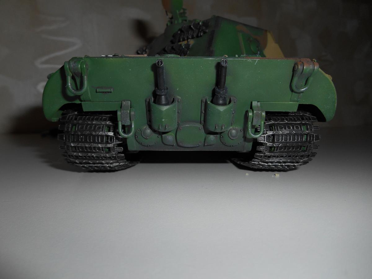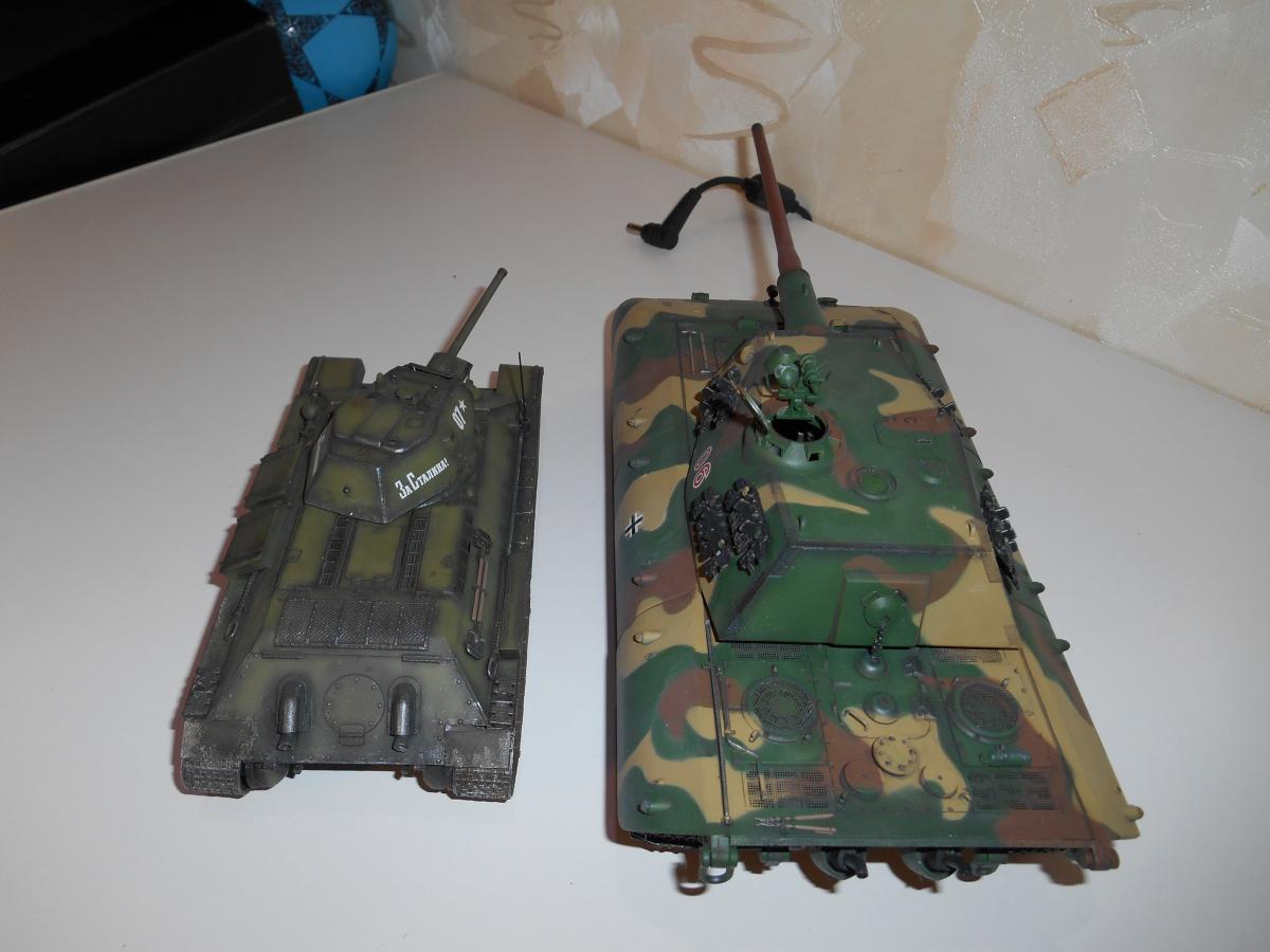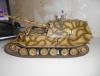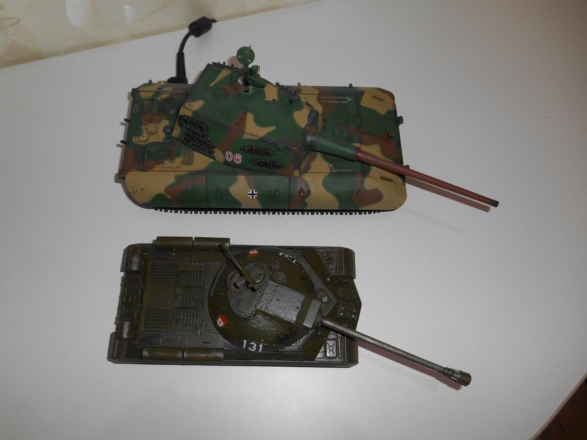 Супертяжелый немецкий танк Е-100, масштаб 1/35, модель опытного образца от Трумпетер. Разработка проекта началась 30 июня 1943 г. и не прекращалась ни на один день до самою окончания войны. Проектирование сверхтяжелого тапка стало данью увлечения фюрера гигантизмом. В конце 1944 г. *** проявил признаки здравого смысла, запретив дальнейшие работы по всем проектам тяжелых танков, но работы по Е-100, тем не менее, продолжились. Конструкторам удалось завершить большую часть проектных работ, а в Хаустенбеке под Падернборном началась сборка корпуса. Шасси и силовую установку танка подготовили к испытаниям в начале 1945 г. На танке был установлен двигатель Майбах HL-230 и трансмиссия Майбах OG-401-216В. Дифференциалы были использованы такие же. как на танке «Тигр» - Хеншель LR01. гусеницы набраны из траков фирмы Адлер, имевших в ширину 1000 мм. Толщина лобовой брони составляла 240 мм. толщина бортовой брони - 120 мм. Башню на танк установить до окончания войны не успели. На корпус в испытательных целях был установлен лишь массо-габаритный макет башни. Танк предполагалось вооружить орудием калибра 150 мм или даже 170 мм. Расчетная максимальная скорость монстра составляла 40 км/ч. Союзники много фотографировали опытный образец в Падерборне. В 1945 г. англичане перевезли корпус танка Е-100 на свой остров для исследований и испытаний. Покраска аэрографом by Lёha.