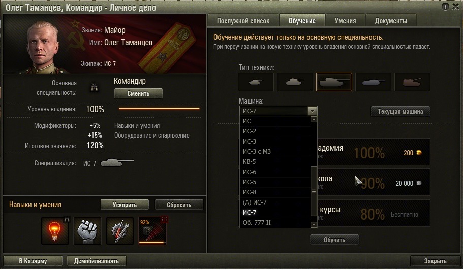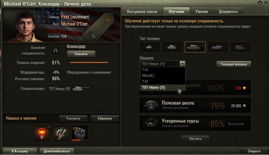 Прокачиваю сейчас ветку на T 57 Heavy. И хотел подготовить экипаж на прем. танке Т34. Но при переобучении экипажа в списке доступных есть только хевик с пометкой (П), и список далеко не соответствует технике доступной в игре, а в некоторых случаях список вообще ограничен парой танков. Смотрел возможность переобучения на других машинах и там можно переобучать с чего хочу на что хочу не зависимо от того были ли у меня эти машины или же нет. В чем заключается проблема?