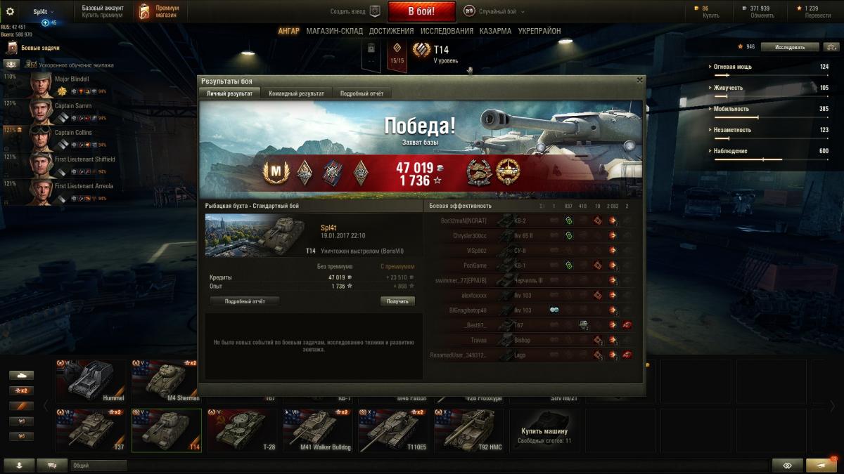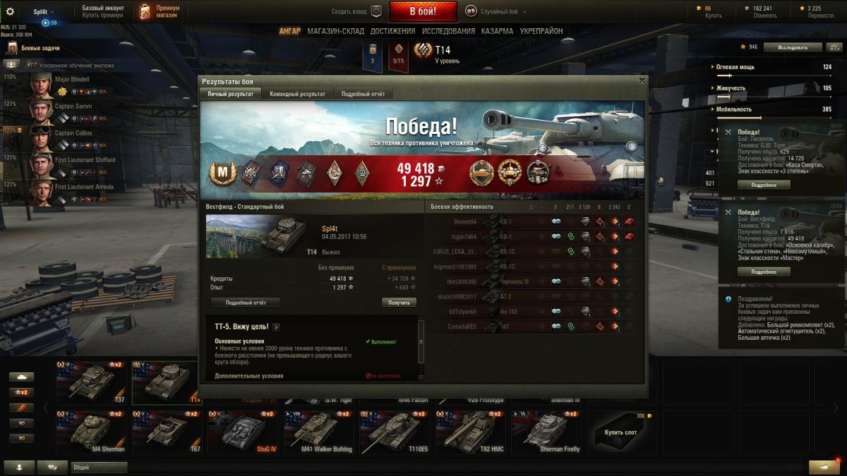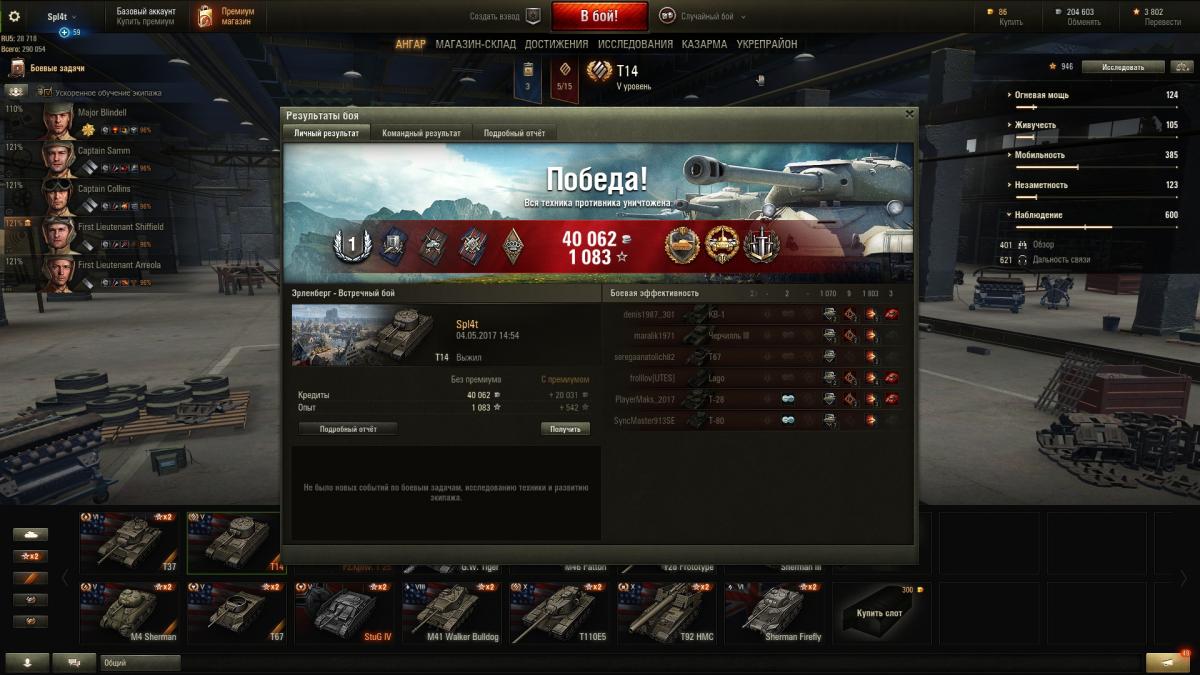 Пожалуй, самый лучший тяж в игре на 5ом левеле: бои макс. с 6-ыми левелами, пушка нагибает и без голды. Ребята вы просто неправильно варите его, поделюсь личным опытом: Что касается боев 5-ого левела аля 5 пт-шек (т67) в бою, то играем в режим захвата - умело ставим броню за домами и светим. В остальных случаях ромбом выезжаем на тяжей и кидаем по кд, пробиваем бб-снарядом практически всех в слабые места!! исключение состовляет АТ2 (в лоб мы неубиваемы друг-другу), его ставим фугасом на гуслю и расстреливаем сзади. Что касается боев когда мы не в топе (5-6 левела), выбираем линию поддержки и кидаем в ст-лт-пт по кд пробиваем бб-снарядом практически всех, опять же ат2 и ат8 (он уже нас в лоб пробивает) оставляем на десерт. Что касается тяжей 6-ого левела, то к концу боя их практически не остается, ну или недобитки, на этот случай возим 10-15 снарядов голды, и то в большинстве случаев пробиваем бб-шкой в уязвимое место многих.Исключение составляют бои с голубо-розовыми стотистами, особенно пуловых т67, не всегда удается их победить, как правило нужно выжидать их самих, в то время как они будут ждать вас. Такая вот палка о ничейном бое. Чтобы понять какие слабые места у танка, то качаем либо моды для игры, либо в телефоне андоид-иосе (например, арморм инспектор, пользовался им) ставим приложение для просмотра детальной брони танков, либо если два монитора (в моем случае), то открываем сайт (например, http://www.wotdb.ru/#country=ussr) и смотрим. Мой набор оборудования стандартый для тяжа: Досылатель (-кд), Улучшенная вентиляция (+все статы), Просветленная оптика (+к обзору). Так же можно играть через Стереотрубу (неподвижно+2х обзор), но игра в пт опять же может сказаться на сливе команды, в случае удачи наказывает даже злых стотистов (тот самый ничейный бой). Удачи на полях сражений!