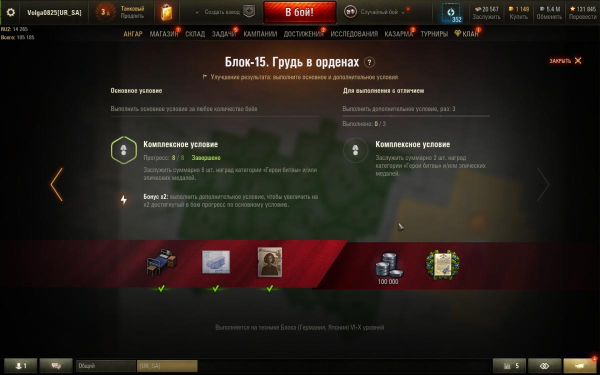 5. Помогите разобраться с условиями задачи Блок 16 - Грудь в орденах. Я выполнил основное 8 из 8 без особых проблем. Но не могу выполнить доп., хотя и получал награды. При этом доп. задание точно такое же, что и основное. Тогда почему не засчитывалось сначала дополнительное? Ведь написано , что если выполнишь доп., то основное будет ускорено в 2 раза. А как же я могу сначала выполнить доп., если основное и доп. абсолютно одинаковые? Зачем же тогда писать про бонус? Может быть доп. вообще не возможно выполнить?