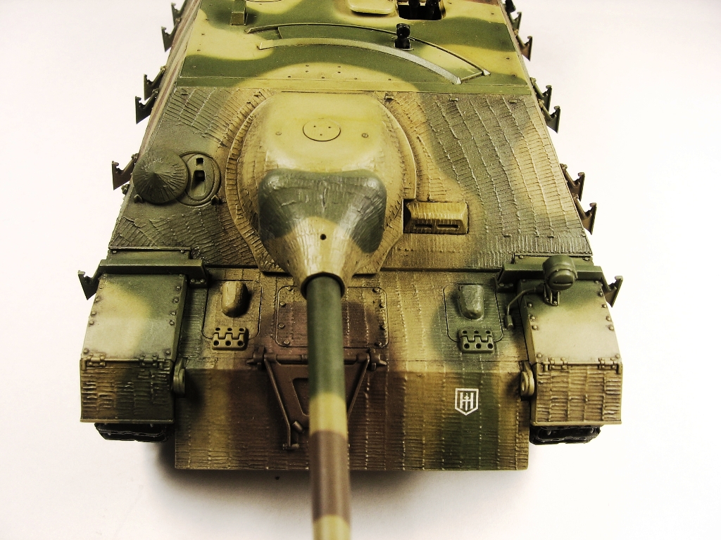 Про квадратики... Вот вся технология окраски: Сначала грунтовал из аэрографа грунтовкой, разбавив ее до довольно жидкого состояния. Этот этап работы над моделью меня удовлетворил меньше всего. Получилось не важно. Надо делать больше моделей, чтобы получалось лучше.Затем – базовый слой. Dunkelgelb. Я применил смесь тамиевских акрилов - пять частей XF-60, столько же XF- 57, две части белого и одна часть хаки. Развел штатным разбавителем и нанес аэрографом. Теперь о масках. Делал их из тамиевского скотча. Наклеивал полосу на коврик, и лезвием ножа вырезал укрупненные контуры желтых пятен. Потом, с помощью травленных эдуардовких круглых шаблонов структурировал края пятен (не везде), вырезая по ним части кругов разных диаметров. Резал прямым лезвием ножа Olfa по шаблону. Перенес полученные маски на модель. Дальше – еще раз наклеил на коврик скотч. Тем же лезвием, с помощью линейки, нарезал тонких полосок разной ширины и, не снимая их с коврика, хаотично порезал поперек, под разными углами. Пинцетом переклеил их на модельку - это как раз для получения мелких пятен. Сейчас я бы делал их размером поменьше.Задул темно-зеленым (XF-61). Повторил описанные действия для коричневых пятен, но с точностью до наоборот - маски служили внешним контуром коричневых пятен. Положил, где необходимо, дополнительные защитные маски. Надул коричневые пятна (XF-64). По высыханию снял маски. Аккуратно пинцетом.