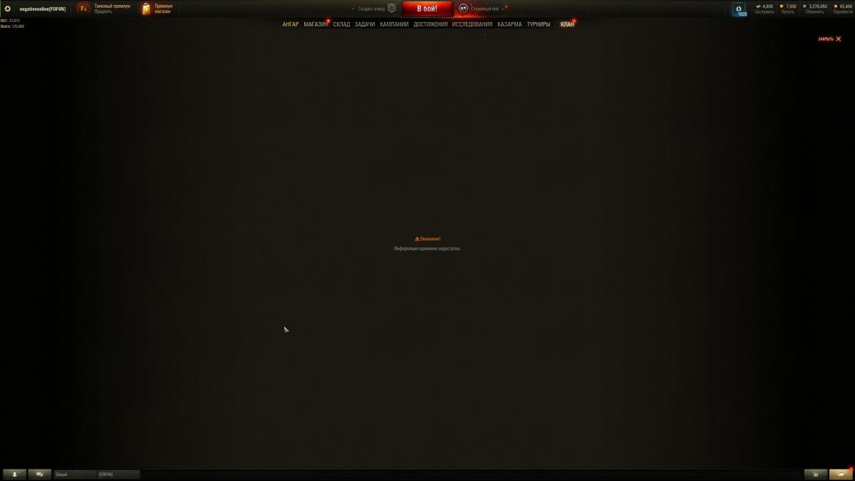 Год в Танки не заходил а тут такое: "Внимание! Информация временно не доступна" 2й день подряд уж. В ебро клиенте всё ок, заходит без проблем. Вкл.\ Выкл. Аппаратное ускорение браузера (с перезагрузкой игры) в настройках графики Чистил кэш браузера клиента игры Чистил днс Менял днс Добавлено в исключения фаервола и т.п. Помогите пожалуйста Убедительная просьба: дегенеративный флуд оставить при себе.