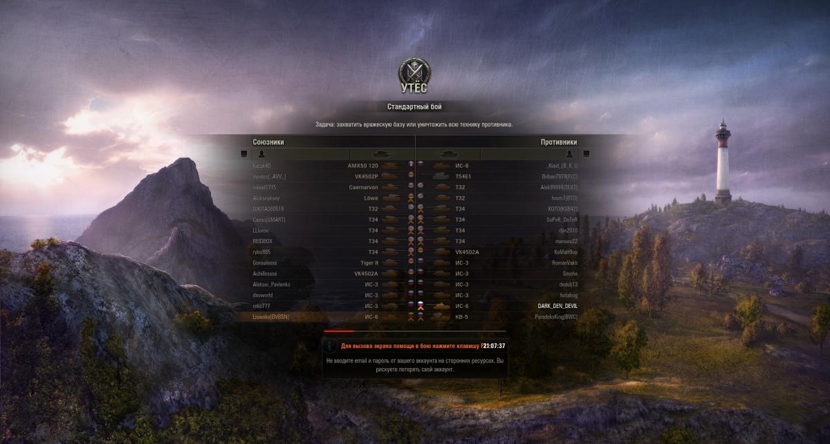 Доброго времени суток всем. Администрация куда вы сегодня ушли, или корейский рандом заразен и он поглатил ВБР? По факту: За сегодня из 20 - 30 проведенных боев уже 5 или 6 раз выскакивает такой расклад техники. И не говорите мне про балансир танков в игре. Или вы его отключили или он навернулся? Вопрос к администрации сервера: Это долго будет длиться? P.S. Тему минут 20 - 30 не закрывайте, я думаю, не я один скринов добавлю.