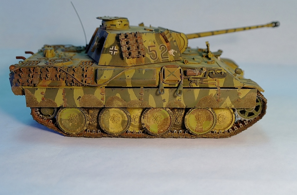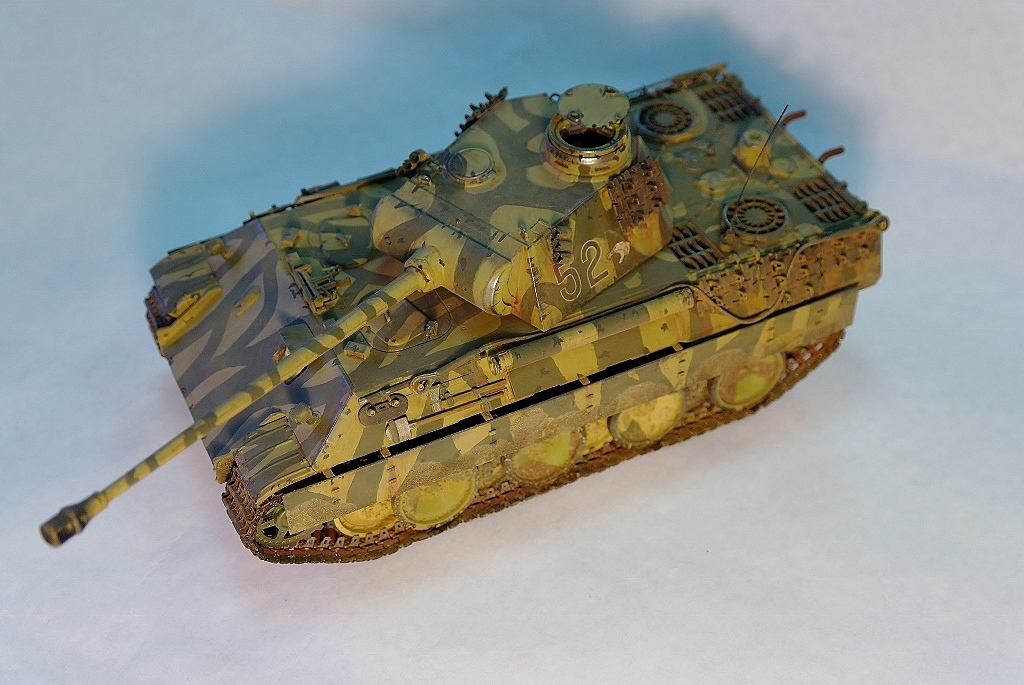 Здравствуйте коллеги. Вот решил разместить на форуме фото своей сего 4-й модели - танк Пантера Т5-G (как его называет Звезда), или VK.30.02.M в нашей игре (до этого были Т-34-57, Т-34-76 и Т-34-85). Касательно модели - это модель от Звезды выполнена ОЧЕНЬ качественно, отличные отливки литников, рабочие сборные гусеницы, хорошая точность сопряжения деталей, отличная деталировка, вплоть до оснащения башни, в общем работать было приятно... но очень много мелких деталей, сложных в сборке и установке - детям не рекомендую... Покраска и отделка модели: красил модель ТОЛЬКО КИСТЬЮ, сделал камуфляж, старение модели и потеки ржавчины, сколы и потертости на броне, грязь и пыль, ржавчину на траках и глушителе, кое где на бронелистах... Вроде получилось не плохо, хоть и сложновато было... Ну и о себе (прошу не удивляться) - мне 60!!!!!! лет полных, в "танки" играю по моему года 4, модели строил последний раз в прошлом веке году в 1995 (вместе с ребятами реставрационной мастерской автозавода АЗЛК) под заказ посольства Франции в Москве для их музеев в масштабе 1:15... Вот решил тряхнуть стариной... Всем удачи. Владимир http://cdn-frm-eu.wargaming.net/wot/ru/uploads/monthly_04_2017/post-26964255-0-93388400-1492209739_thumb.jpghttp://cdn-frm-eu.wargaming.net/wot/ru/uploads/monthly_04_2017/post-26964255-0-93823000-1492209740_thumb.jpghttp://cdn-frm-eu.wargaming.net/wot/ru/uploads/monthly_04_2017/post-26964255-0-60155400-1492209743_thumb.jpghttp://cdn-frm-eu.wargaming.net/wot/ru/uploads/monthly_04_2017/post-26964255-0-76817300-1492209742_thumb.jpghttp://cdn-frm-eu.wargaming.net/wot/ru/uploads/monthly_04_2017/post-26964255-0-86548800-1492209741_thumb.jpg http://cdn-frm-eu.wargaming.net/wot/ru/uploads/monthly_04_2017/post-26964255-0-43329000-1492209744_thumb.jpghttp://cdn-frm-eu.wargaming.net/wot/ru/uploads/monthly_04_2017/post-26964255-0-24219700-1492209745_thumb.jpghttp://cdn-frm-eu.wargaming.net/wot/ru/uploads/monthly_04_2017/post-26964255-0-03566900-1492209746_thumb.jpghttp://cdn-frm-eu.wargaming.net/wot/ru/uploads/monthly_04_2017/post-26964255-0-96015200-1492209746_thumb.jpghttp://cdn-frm-eu.wargaming.net/wot/ru/uploads/monthly_04_2017/post-26964255-0-85224900-1492209747_thumb.jpg