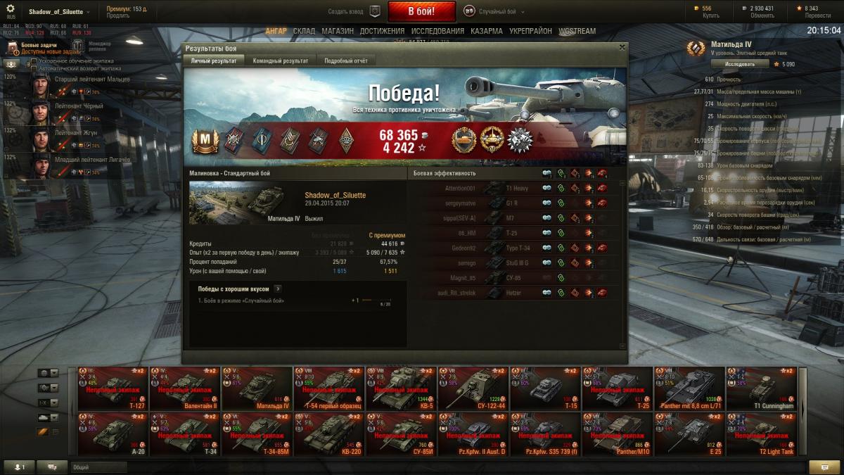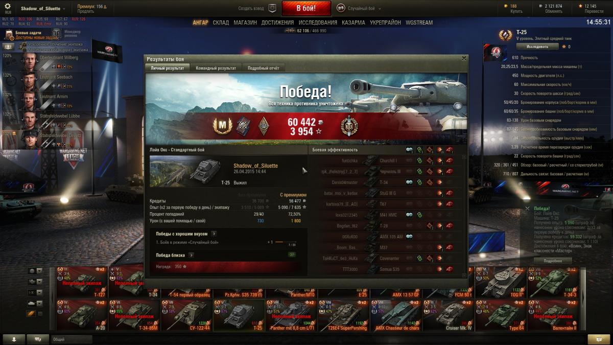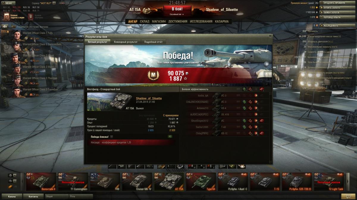Погляди мои риплеи в этой теме. Например этот http://forum.worldoftanks.ru/index.php?/topic/679782-at-15a/page__st__3440__pid__30390003&do=findComment&comment=30390003 Любой танк в руках, растущих в непосредственной близости к [цензура] отверстию, "ни нагибаит" и являет собой полное УГ. В других руках ситуация меняется. Надеюсь я понятным языком изложил свою позицию. Не поленился, пришел с работы и нашел вчерашний риплей. Руинберг, стою обнаглев по центру улицы, 280 метров (проверил по риплею) передо мной КоТэ, КВ-1С, ИС-3, ЧиРи, А-44 из-за угла еще выглядывал. Пока стоял выцеливал пробили 2 раза: квас, как обычно, с вертухана прям в кепку)))), и ИС-3 в маску. Как только начал "челночить" пошли нипробилы и рикошеты. Итого 1600 набил, 2400 принял, Стена, Спартанец. Скока там у АТ-шки ХП? Пральна, всего 850. Три раза должен был помереть. ЗЫ Кто хочет играть на британских "черепашках" смотрите и, не постесняюсь сказать, учитесь. http://wotreplays.ru/site/2404287