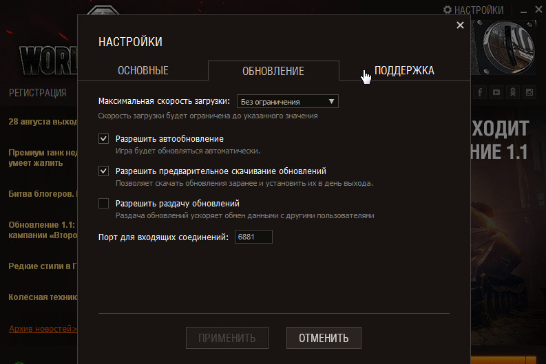 может вопрос банальный просто не знаю как работает лаунчер в этой игре при обновлении (( а суть такая моего вопроса (( допустим пк работает - лаунчер запущен - настройки выстоновлены на авто обновление - http://cdn-frm-eu.wargaming.net/wot/ru/uploads/monthly_08_2018/post-27023729-0-31576700-1535401610_thumb.jpg но обновление будет через например некоторое время -- оно запустится ?или все же нужно перезапустить лаунчер ??