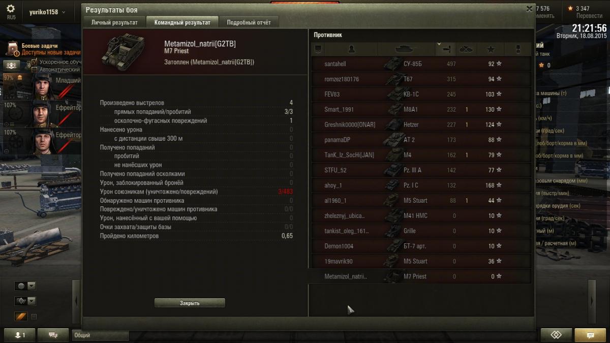 дык он меня и сваншотил,пока я бы на кд.потом федю забрал... до кучи лт прибил.кпд ему видите ли не понравилось. лт прижался к камню,с двух сторон его контролят...куда ему деться? он перестал светить,этот неадекват его убрал. я чуть сильнее прижался к стене,он подьехал сзади и всё...вафля кончилась. федя активно сдерживал тт... не в лоб.кто не в курсе,у него нету башни.издалека.... этому удоду надо было тт забрать,а не федю... главное он не посинел,что печально.а меня забанили в чате... и да,арта синеет.видал.но у того кпд низкое было...мож поэтому?