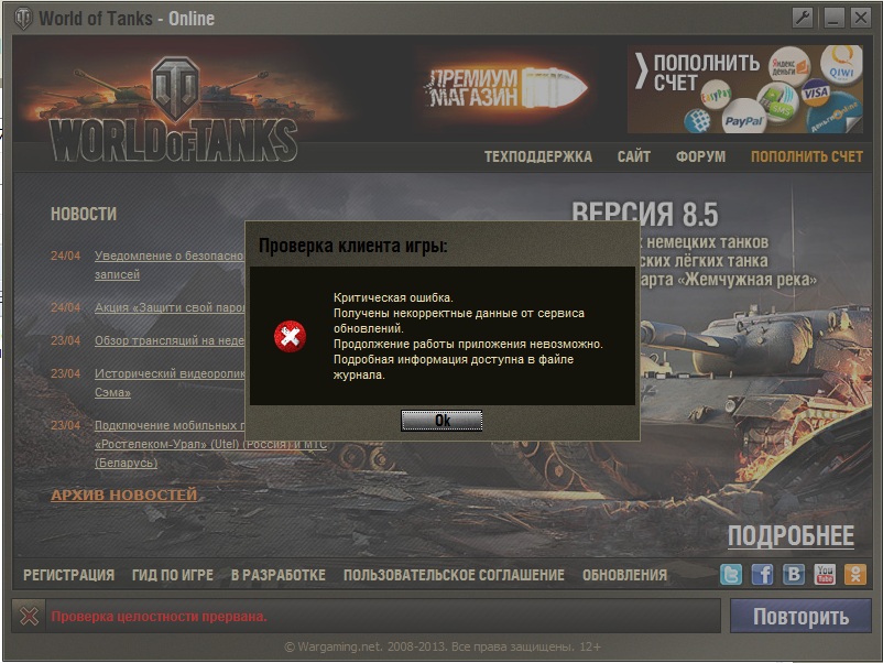 Доброго времени суток. Подскажите пожалуйста почему не загружается клиент с офф сайта? запускаю лаунчер и он выдает ошибку как на скриншоте когда начинаю заходить на сайт варгейминга - тоже проблема с подключением. как я понимаю просто упал сайт варгейминга или это проблемы с моей стороны?
