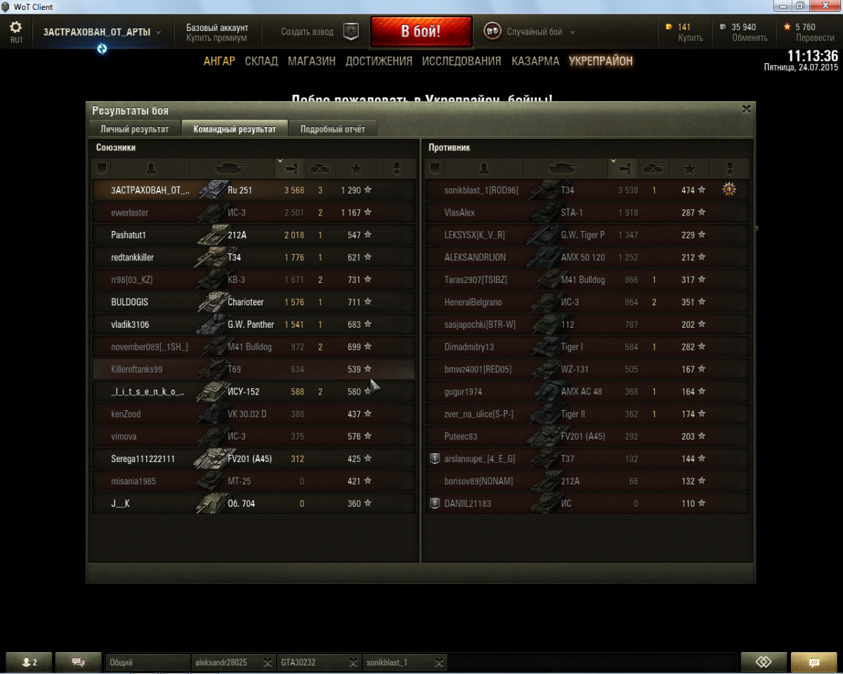 Победа! Бой: Карелия Техника: Spähpanzer Ru 251 Получено: (X 2) 2 645 33 915 Награды и Достижения: «Костолом»; «Огонь на поражение»; Знак классности «1 степень» вот в этом бою я набил хп 3568 и это больше чем все остальные , но медаль основной калибр дали игроку на т-34 из проигравшей команды с результатом 3538 хп !!!! почему ????