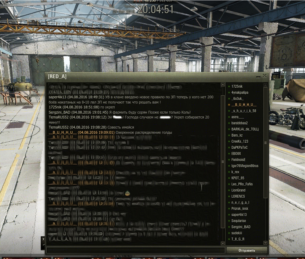 Хочу сообщить о бесчестном и лживом командире клана RED_A . _SNIMA_26RUS_ во время распределения голды за месяц, вдруг вводит новое условие для его получения. О том, что оно новое, показывает приложенный скрин со словами замкома. На мои вопросы и предложения разобраться он приглашает меня в комнату в тс, в которой также присутствуют еще три замкома. Вчетвером ребята пытаются меня переубедить и объяснить, что я не прав. После нескольких предложений становится понятно, что это разговор из разряда - ты тупой, а мы умные. Для, якобы, подтверждения своих слов _SNIMA_26RUS_ изменяет объявление на странице клана, добавив новое условие, но при этом говорит, что он просто его обновил. Хочу пояснить, что я довольно активный игрок и постоянно участвую в укрепах и ГК. И сама голда не столь важна, сколько это принципиальный момент. Командующий волен распоряжаться ей, так как ему вздумается, но я хочу предупредить игроков, которые может быть захотят вступить в этот клан. http://cdn-frm-eu.wargaming.net/wot/ru/uploads/monthly_08_2016/post-27583770-0-84551100-1470442200_thumb.jpg PS если поместил тему не в тот, раздел, прошу модератора перенести в нужный.