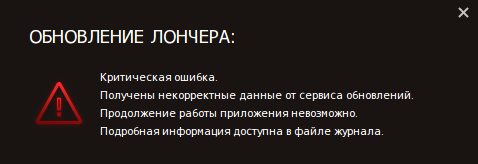 Ланчер сегодня попросил обновления, началось обновление, ребут, запуск и уходит в ошибку. Пробовал снести, загрузить установщик с сервера, при первом запуске ланчера та же самая. Вот такие приключения в логе: send http request. url: "http://update.worldoftanks.ru?protocol_ver=4..... WARNING: http request failed. what: http request error, msg: Unexpected http server response code(400) ERROR: http request failed. what: http request error, msg: Unexpected http server response code(400). Вот такие прелести ping: $ ping update.worldoftanks.ruPING update.worldoftanks.ru (185.12.241.10) 56(84) bytes of data.64 bytes from eu4-slave-10.worldoftanks.eu (185.12.241.10): icmp_seq=1 ttl=53 time=60.6 ms64 bytes from eu4-slave-10.worldoftanks.eu (185.12.241.10): icmp_seq=2 ttl=53 time=60.1 ms64 bytes from eu4-slave-10.worldoftanks.eu (185.12.241.10): icmp_seq=3 ttl=53 time=60.1 ms64 bytes from eu4-slave-10.worldoftanks.eu (185.12.241.10): icmp_seq=4 ttl=53 time=61.0 ms Че там с сервером обновлений? Надолго это дело?