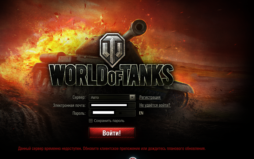 Как мне воити в танки?я оказался между прошлым патчем, и обновлением!