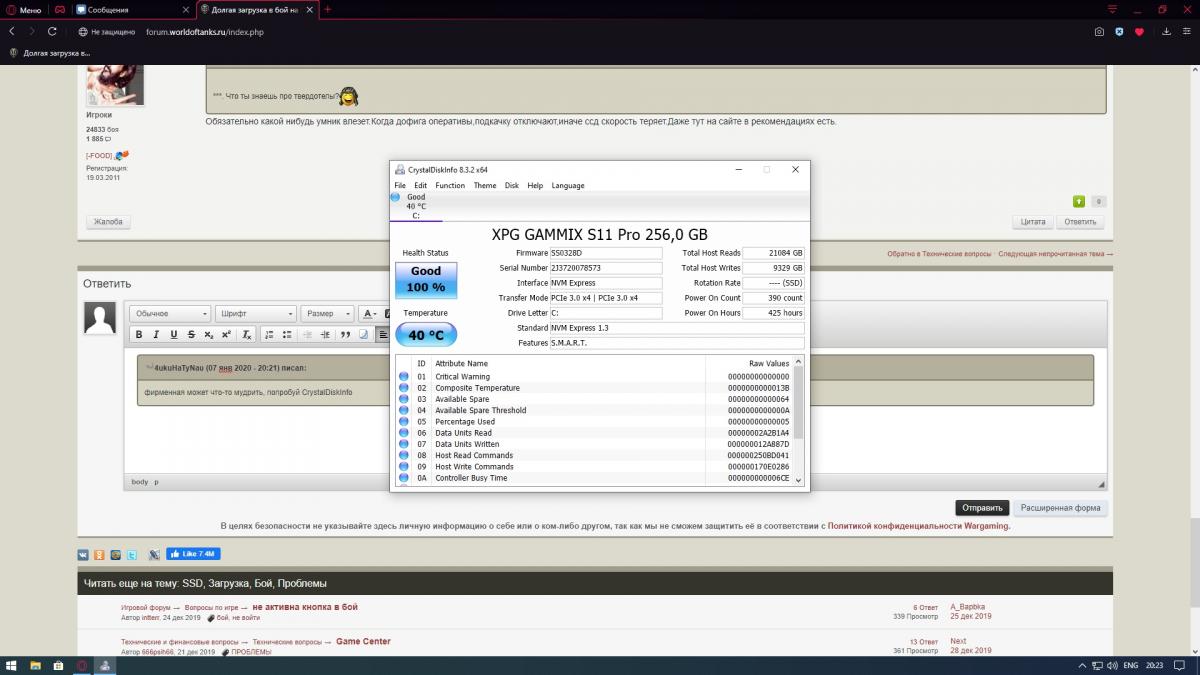 http://cdn-frm-eu.wargaming.net/4.5/style_images/wg/snapback.png4ukuHaTyNau (07 янв 2020 - 20:21) писал: фирменная может что-то мудрить, попробуй CrystalDiskInfo http://cdn-frm-eu.wargaming.net/wot/ru/uploads/monthly_01_2020/post-2795662-0-16266400-1578417920.jpg Тех. состояние - Good. Я и говорю, ошибок нет, вроде как.