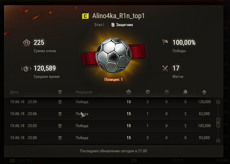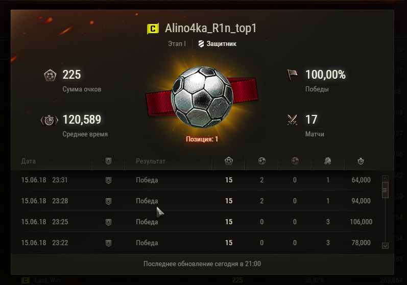 1. Доброго времени суток! У меня вопрос по договорным матчам. Если посмотреть рейтинг по матчам, то возникает вопрос, как игрок у которого 0 боев в игре берет первое место в рейтинге защиты? А ответ наверное очень очевиден, договорные матчи, или кто то особо приближенный в WG опять постарался. Спрашивается, когда же это кончится? Когда будет честная игра и честные очки? P.S.: если внимательно посмотреть на время все матчи длятся не более 3 мин. Скриншоты прилагаю, хотя думаю "Программерам" из WG не составит труда и так все проверить! С Уважением Игрок!