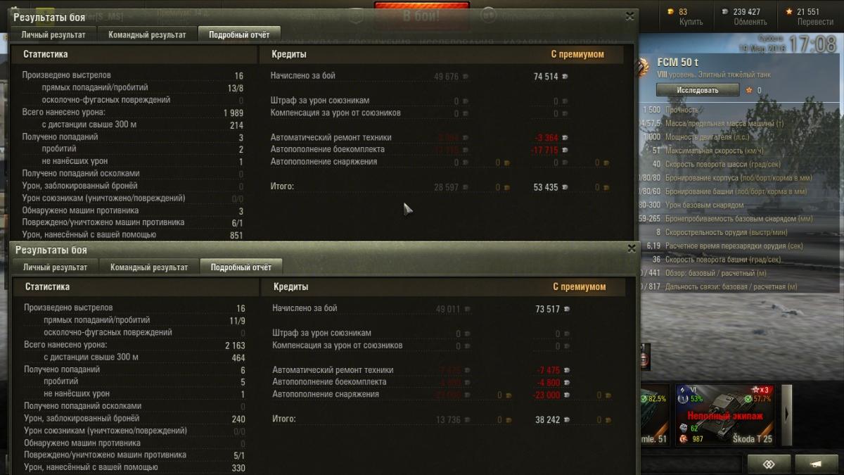 См. графу "начислено за бой" - 74к и 73к соответственно. Мутц снизу кстати, это он меньше нафармил (ФЦМ несколько пулек голдой в лоб иц-3). P.s. мутц с шоколадкой субъективно становится намного комфортнее..