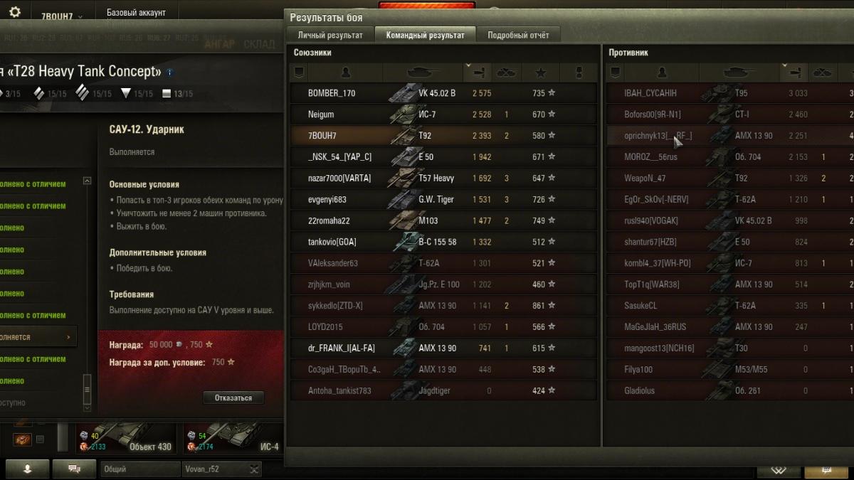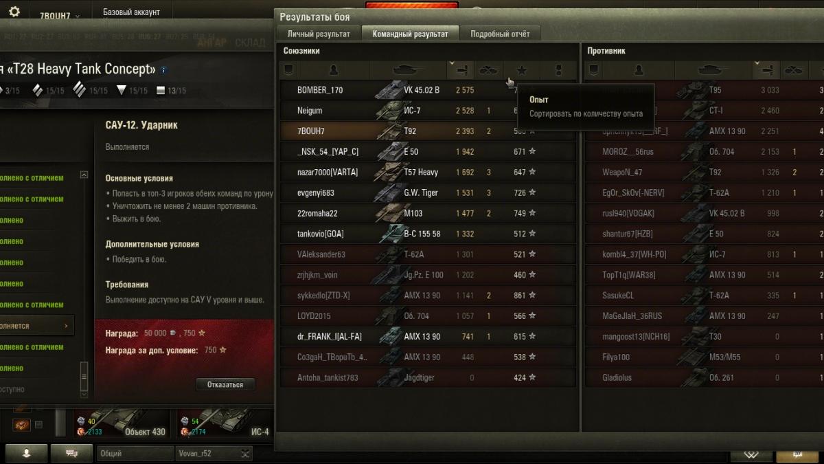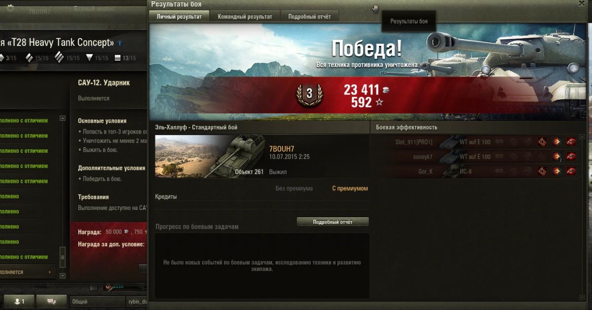 Всем танкистом привет! Вопрос таков, выполняя задачи, можно их выполнить либо основу или и основу и доп. задания, но как перфекционист, я не могу смотреть на лист с заданиями по рознь (какое-то задание выполнено, а какое-то выполнено с отличием), так вот я улучшал свой результат на некоторых заданиях - на некоторых они перевыполнялись а на других НЕТ!!!- т.к. сказано, что для улучшения не надо выполнять основное задание, т.к. оно уже выполнено, тобишь остаётся выполнить доп. задание, так вот- доп. задание (к примеру, т.к. таких доп. заданий полно, которых не могу перевыполнить) выжить на ст. сколько раз я не перевыполнял- толку нет!!!!!! может это баг??? или надо на той же технике выполнять, что и основу? Не думаю, всё равно ничерта подобного! Не помогает!! В чём причина? Подскажите.