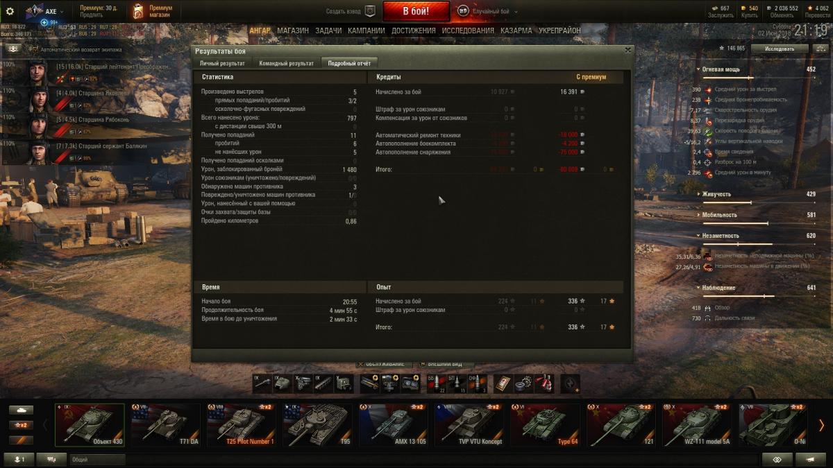 Ну всё как бы видно на скрине ниже. Помимо конкретного слива игра решила опустить меня ещё и на бабки. Уточню, что на танке стоят обычные аптечка, ремка и голдовый огнетуш, при чём все они есть на складе!!! То есть по сути после боя за снаряжение вообще ничего не должно было списаться, оно должно было просто доставиться со склада! https://forum-mt-prod.lesta.ru/emoticons/Smile_ohmy.gif Если кто-то из разрабов прочитает это, я очень прошу объяснить, как так вышло... Все -80к кредитов после боя реально списались как говорят в порядке вещей... https://forum-mt-prod.lesta.ru/emoticons/Smile_sad.gif ЗЫ: Форму сжал скрин до нечитабельности, так что ссылка на оригинал: https://yadi.sk/i/qsSvoXIS3WuqAX