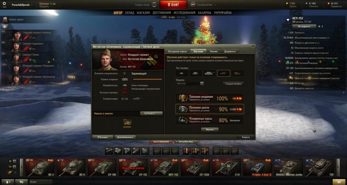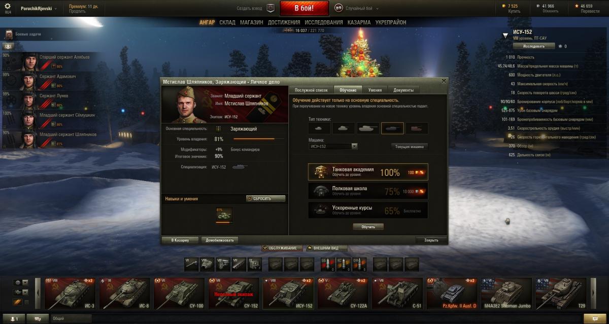 За 9 месяцев тоже такого ни разу не было, а вот за последний месяц второй раз заметил. Кликнул точно туда. Специально выделял "полковую школу", делал скрин, после чего нажимал "обучить" и снова делал скрин. Так у каждого члена экипажа. 4 бойца переобучились правильно, а последний увы... Я не собираюсь просить разработчиков просить откатить мне переобучение, не собираюсь плакаться. Просто обратите внимание на этот баг. Он действительно есть. Не знаю, с чем связан,- с релизом или новогодним марафоном, но есть точно. Разберитесь, пожалуйста, и исправьте.