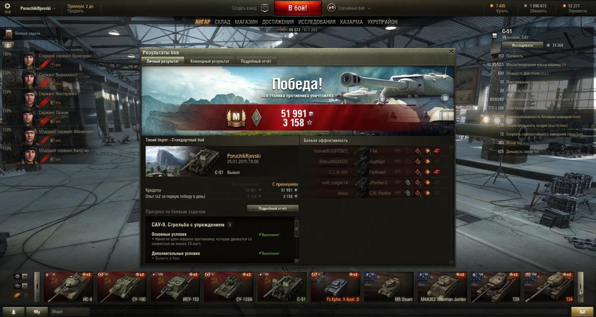 Прошлую тему закрыли с отпиской. Были написаны общие слова, не на тему вопроса. Но проблема то есть. При очередном переобучении экипажа на этот раз с СУ152 на ИСУ152 снова один из членов экипажа был переобучен неполностью. Предвидя такую возможность (т.к. уже накололи с пересадкой с КВ85 на ИС8) перед каждым переобучением, прежде чем нажать кнопку "обучить" делал скриншот. И на последнем заряжающем повторилось. На скрине видно, что имеется 100% обученный боец, с того же типа техники, выбрана "полковая школа". Но после нажатия на "обучить" он переучивается как с "ускоренных курсов". http://cdn-frm-eu.wargaming.net/wot/ru/uploads/monthly_01_2015/post-28300384-0-04638400-1421365576_thumb.jpghttp://cdn-frm-eu.wargaming.net/wot/ru/uploads/monthly_01_2015/post-28300384-0-02575600-1421365590_thumb.jpg Большая просьба, не надо цитировать руководство к игре и правила переобучения экипажа. Они известны. Пожалуйста, разработчики, обратите внимание на проблему. ОНА ЕСТЬ.