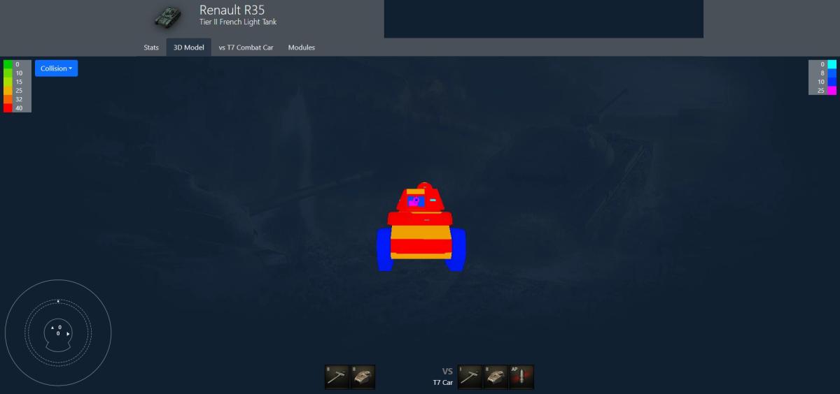 Не сочтите за флуд. Посмотрите круговую броню Renault R35 (2 уровень) и Pz.Kpfw. 38H 735 (f) (2 уровень) при пробитии у T7 Combat Car 27мм. Реплеи, если писались, вечером скину или новые запишу.