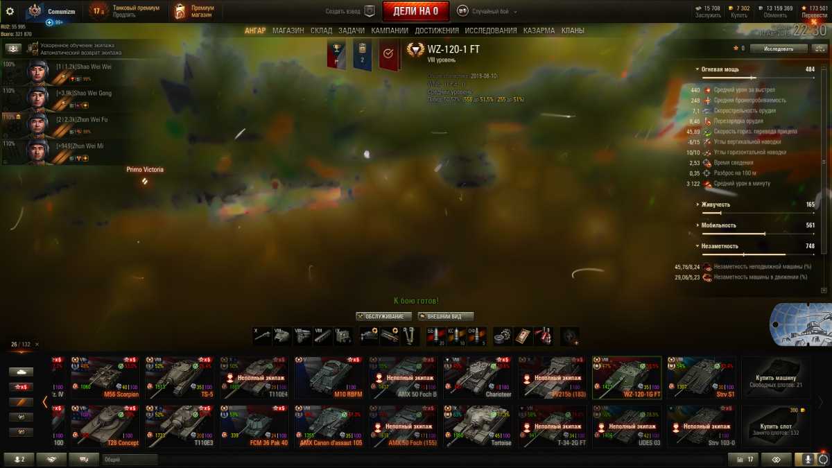6. дайте день-другой - протестирую, если появится вновь - выложу снова скрины. Снесу моды и опять тест. Я думал, что по такому багу уже была информация и меня перенаправят в другую тему на форуме. Извините за беспокойство. P.S. Возможно информация будет полезной, однако, все началось с того, что наградной стиль "Светильник Джека" (установлен на прем. ПТ WZ-120-1 FT) начал отображаться еще и на прокачиваемой технике из ветки ПТ (Т-34-2G FT), хотя я прекрасно знал, что такой стиль у меня всего лишь в одном экземпляре. После того как я зашел во вкладку "Внешний вид" - началась эта вакханалия ангара, с учетом того, что я мог спокойно двигать камеру.