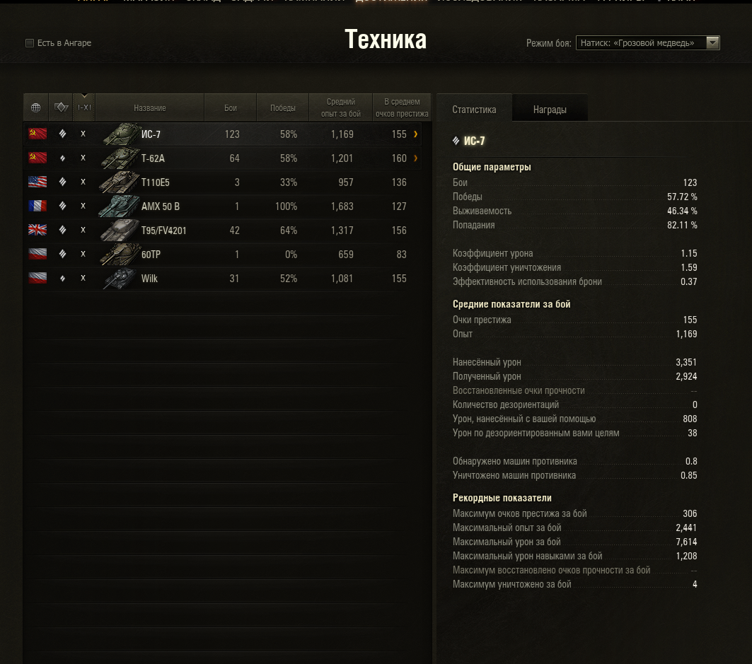 Откатап 85к опыта за 92 боя, правда последние 20 боев разучился играть и средуха упала с 3500 до 3000. По сборке досыл/прицел/турбина. В нынешней мете один из лучших ст8.