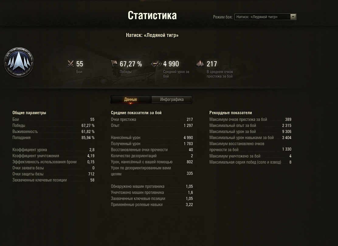 Так в этом и суть, на одинаковом рейтинге и боях у вас будет +- одинаковая стата. Я так же, если бы летел в Легу, то сидел бы с 3000-3500 среднего, так как на хай рейтинге уже не покатаешь под ***, там только потеть против таких же уродов как я, ну и цена ошибки очень велика, в отличии от лоу рейтинга.