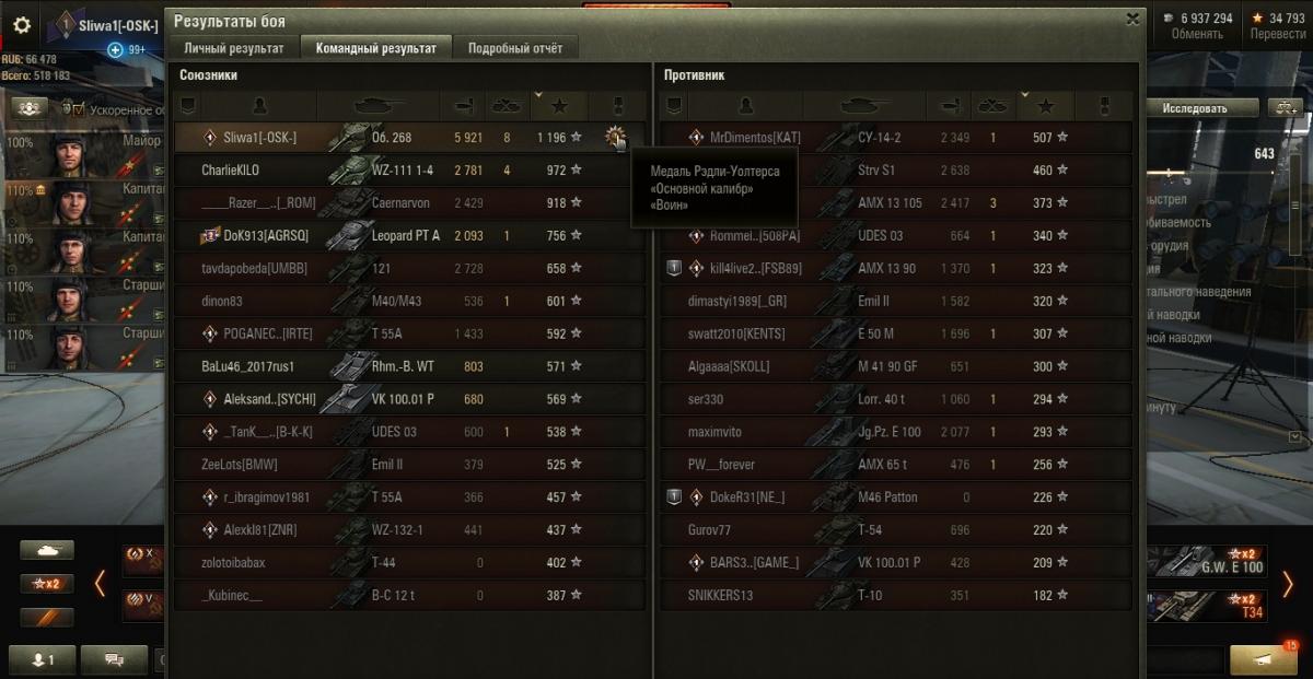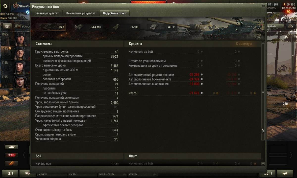 В конце боя вылетел,итог на скрине