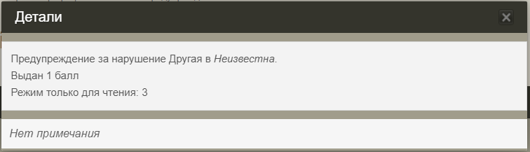 Доброго времени суток! здесь, на форуме под моим ником высвечивается штрафной балл, без адекватной причины. Подскажите, куда могу обратиться с просьбой актуализировать, объяснить или убрать? https://forum-mt-prod.lesta.ru/monthly_08_2024/post-289700-0-47810600-1724232778_thumb.png https://forum-mt-prod.lesta.ru/monthly_08_2024/post-289700-0-01963000-1724232856_thumb.png