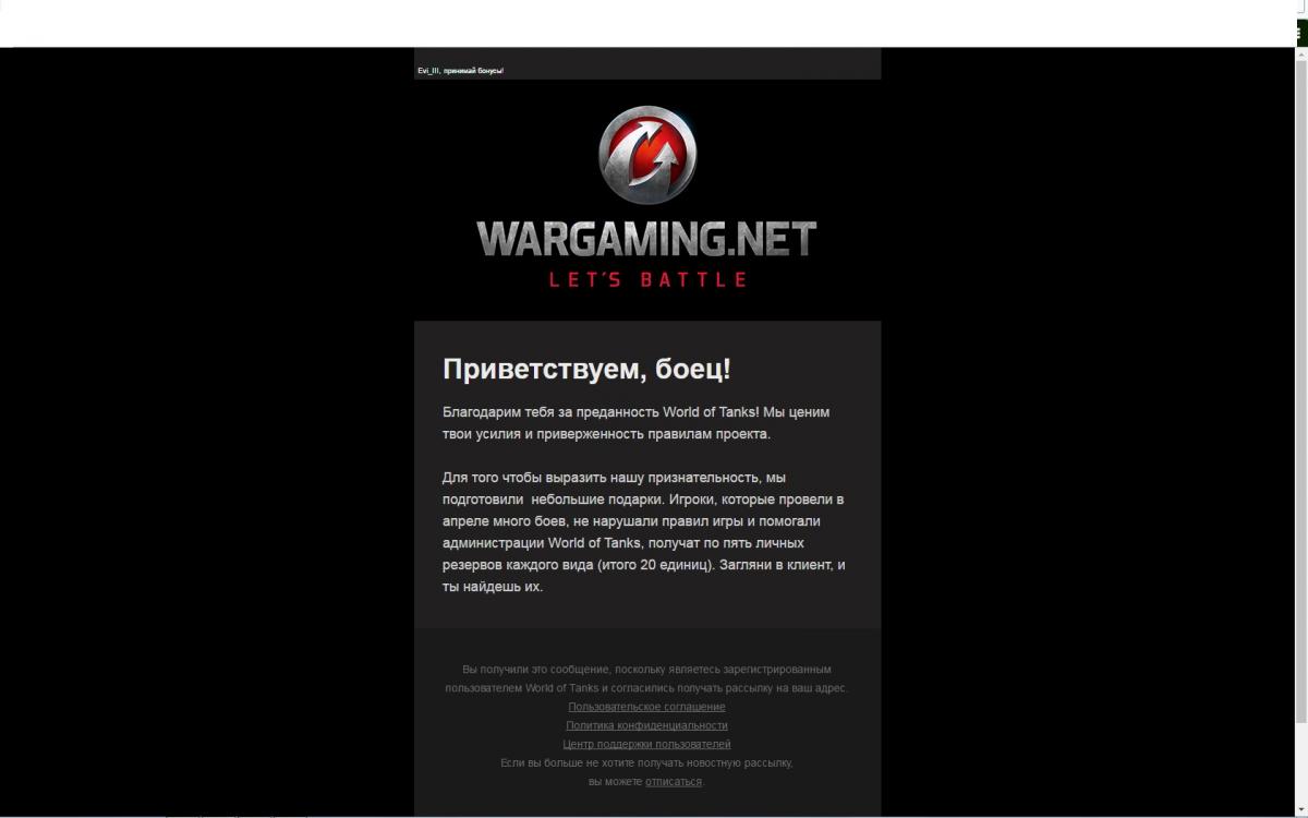 Доброе утро. Вчера создал тему http://forum.worldoftanks.ru/index.php?/topic/1764718-%D0%BB%D0%B8%D1%87%D0%BD%D1%8B%D0%B5-%D1%80%D0%B5%D0%B7%D0%B5%D1%80%D0%B2%D1%8B-%D0%BF%D0%BE%D0%BB%D1%83%D1%87%D0%B5%D0%BD%D0%BD%D1%8B%D0%B5-%D0%B7%D0%B0-%D0%B0%D0%BA%D1%82%D0%B8%D0%B2%D0%BD%D0%BE%D1%81%D1%82%D1%8C/ и утром получил ответ от глобального модератора. Так как тема закрыта - пришлось создать новую. Видимо, не совсем точно описал суть вопроса. Мне начислили по 5 резервов каждого вида, но резервов на опыт у меня как было 4 уникальных, так и осталось (вчера использовал по резерву на опыт, свободный опыт и кредиты). А должно было появиться 5 резервов на опыт в бою одинаковых, или я что-то не понял? Точное число резервов на свободный опыт, опыт экипажу и кредиты я не помню, поэтому судить по ним не могу, но резервов на опыт я не обнаружил. Спасибо за ответ заранее.