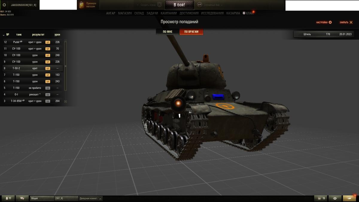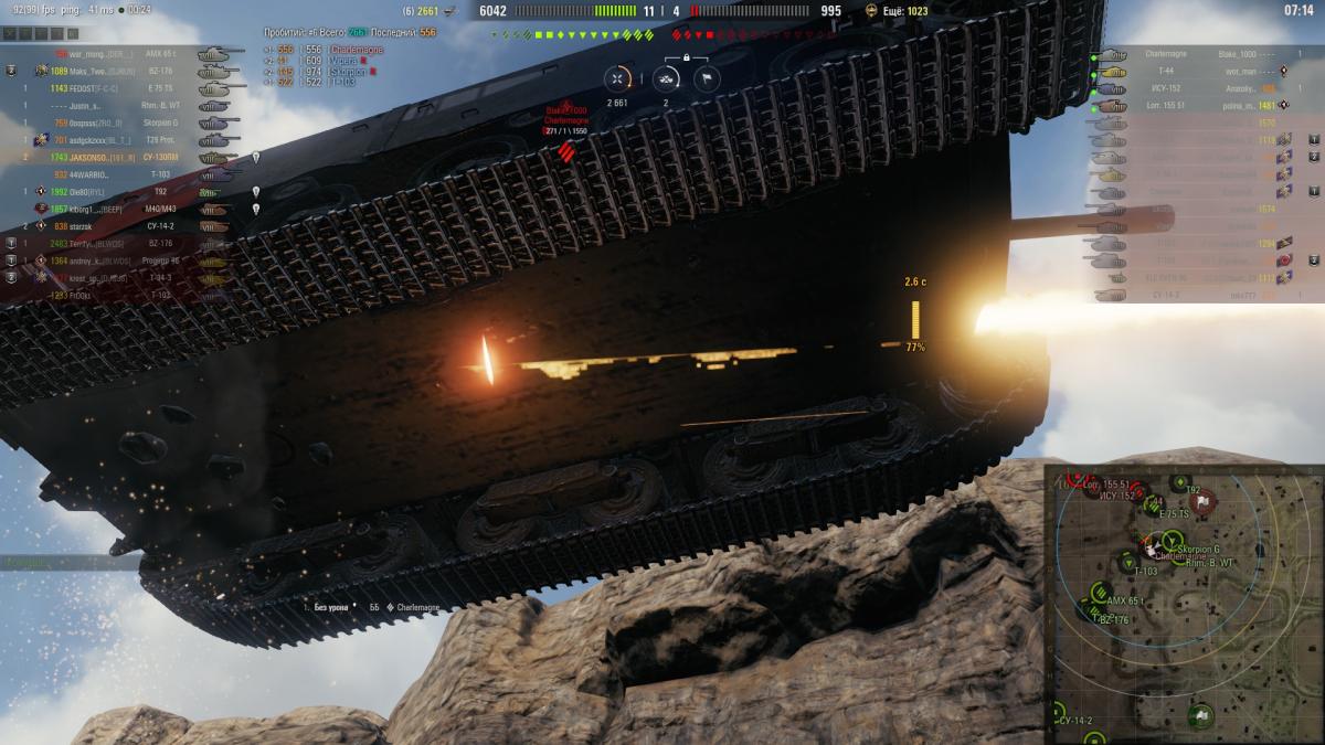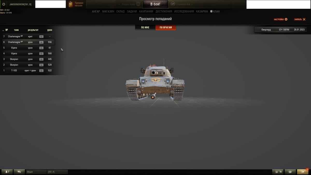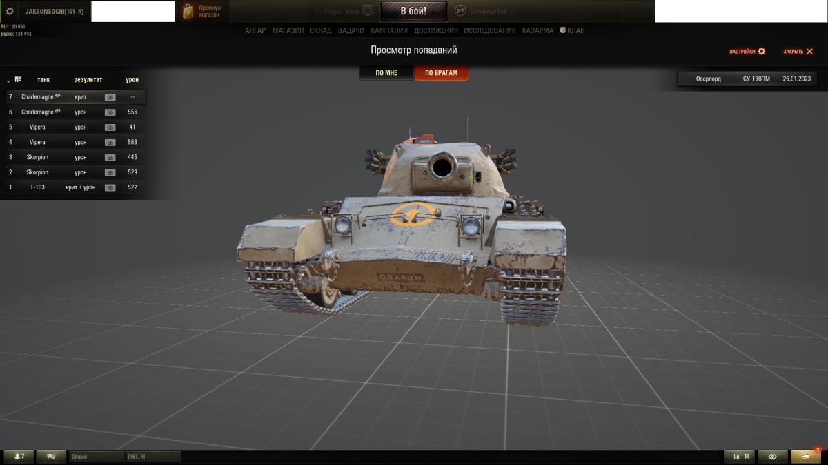 Всем привет, играя на СУ-130ПМ и стреляя по Charlemagne произошло то, чему не смог найти объяснение. 1-ый скрин: Ангарный мод показывает попадание в НЛД и пробитие (556 урона); 2-ой скрин: Ангарный мод зафиксировал попадание в танк, но нет информации о месте попадания и результатах этого попадания; с 3-го - по 7-ой скрины: траектория снаряда 2-го выстрела (по логу урона виден результат 1-го выстрела - пробитие (556 урона)). Вопрос в том, почему попав 2-ым выстрелом в НЛД (по схеме бронирования и углу вхождения снаряда там был шанс пробить примерно 50%) мне сообщился результат - "Не попал в броню"? Если бы сообщили что "Не пробил", вопросов бы не возникло, но по траектории снаряда (на скринах из реплея) видно как он прошел сквозь броню НЛД и взорвался за танком в земле.