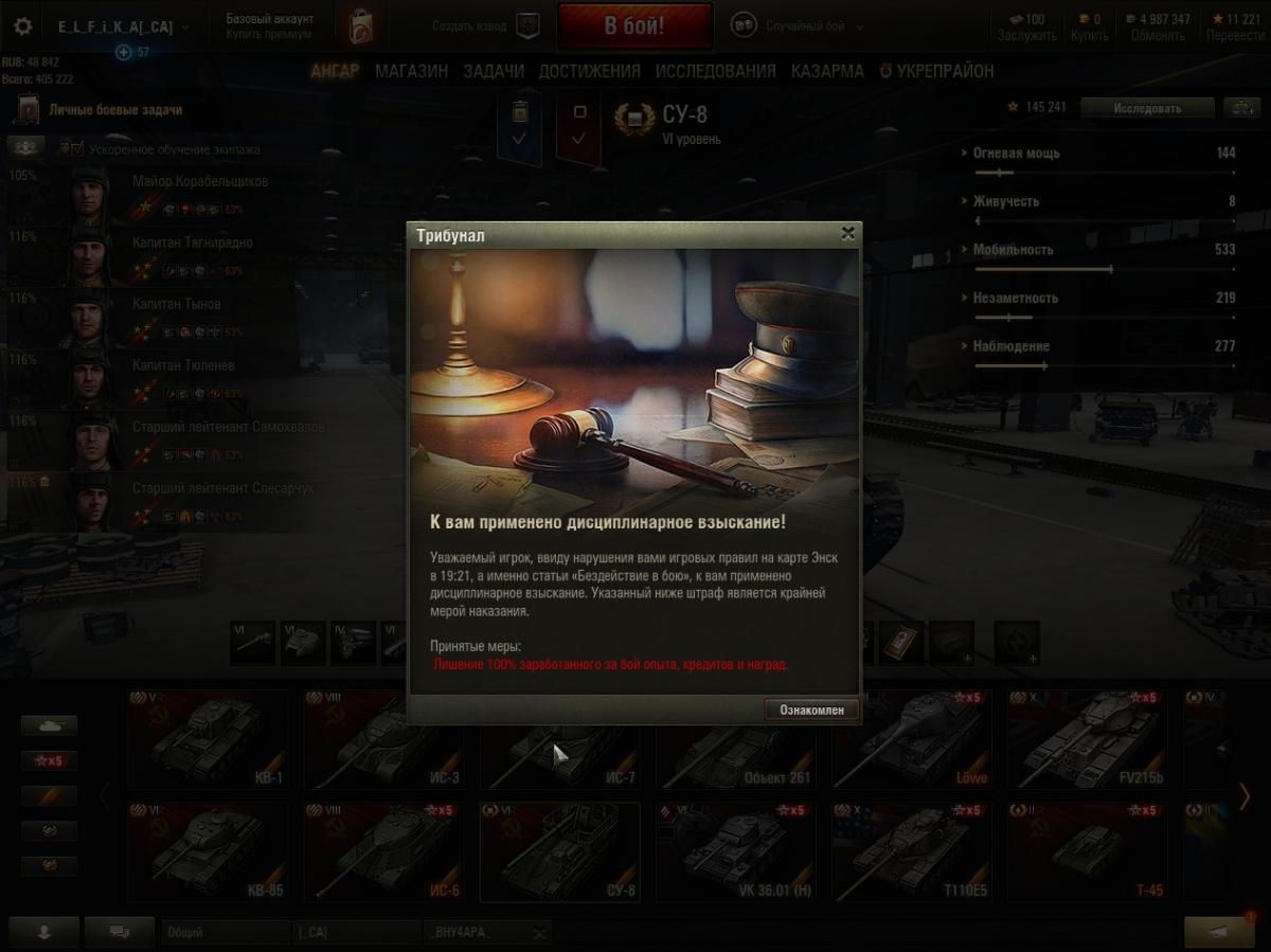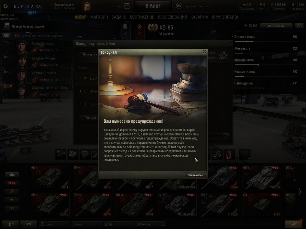 Во время каждой акции начинается полная лажа с игрой: тормозит, подлетает пинг, зависает. Во время последней и вовсе каждый третий бой загрузка боя висит начиная с 25 секунды отсчета, после связь с сервером прервана, а как захожу, то меня убили, а в ангаре "супер справедливое" предупреждение. И так каждые 3-4 боя. Написать в техподдержку не удалось. Вопрос за что наказание????????