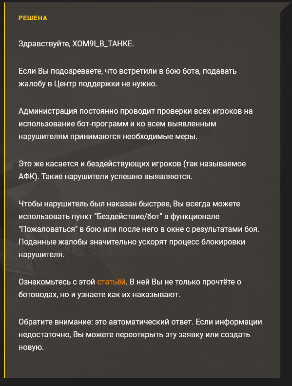 Странный бой был утром. Попал в одну команду со взводом, одинаковые ники, только цифры меняются По ходу боя обратил внимание что они едут по одному и умирают Пока первый играл 2 афк были, только первый умер второй поехал с базы У противников тоже был взвод, как думаете это подставухи? И вообще можно ли так играть? Скриншот и реплей приложу. http://wotreplays.ru/site/13776525#berlin-xom9i_b_tahke-panhard_ebr_75_fl_10 Ответ из ЦПП. Говорят что всё банится автоматически Ну ну