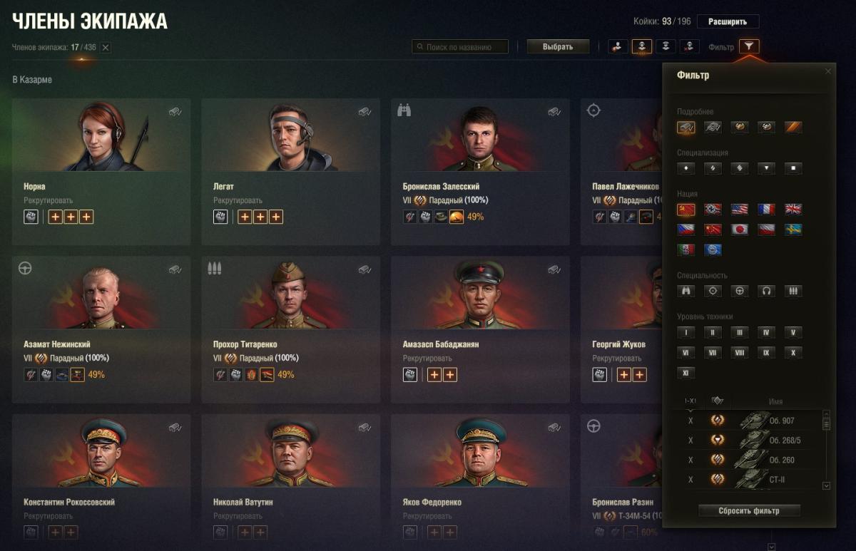 Разработчики! Эхх... услышьте мнение людей хотя бы 1 раз, все как обычно. Услышьте прошу, вы же видите вы с каждым разом все хуже и хуже делаете, трогаете то к чему люди более 10 лет привыкли. Зачем было делать вид экипажа более компактным - он и так не мешал не кому, игроки привыкли перед боем смотреть на перки экипажа всегда это уже основа. Если что то бестолковое делаете дайте выбор убрать или оставить как было - это база. В казарме вы каждый раз трогаете бесполезно, вы до сих пор не понимаете что нужно сделать как было всегда, фильтр всегда запоминает последнее действие, и игроки всегда заходили и уже все было выбрано, а сейчас каждый божий раз нужно по 5-7 кнопок нажимать, поймите это. Сейчас вообще сделали - хочу как обычно посмотреть экипаж советский а теперь к ним еще показывает рекрутеров показывает зачем? и это убрать нельзя. Фото прикреплю с фильтрами вашими. Когда ни будь вы научитесь слушать игроков которые действительно хотят помочь игре, а вы делаете по своему убивая игру все ниже и ниже....Люди ждут новости по ограничению голды - это самое главное в игре что нужно сделать или перебалансить ее еще как то, а вы трогаете то что работало всегда и вопросов не было по этому. Спасибо.
