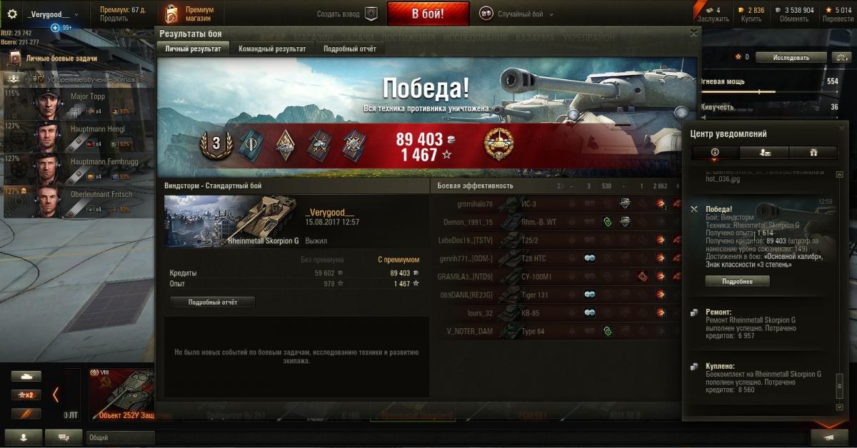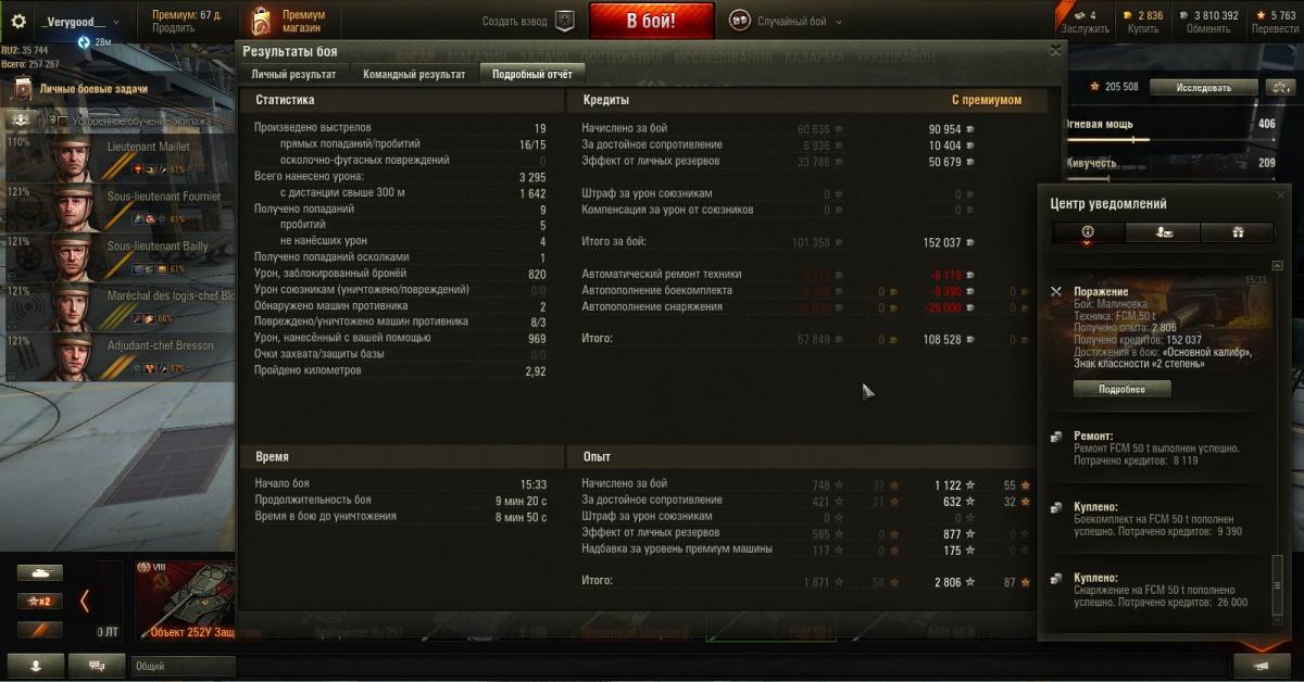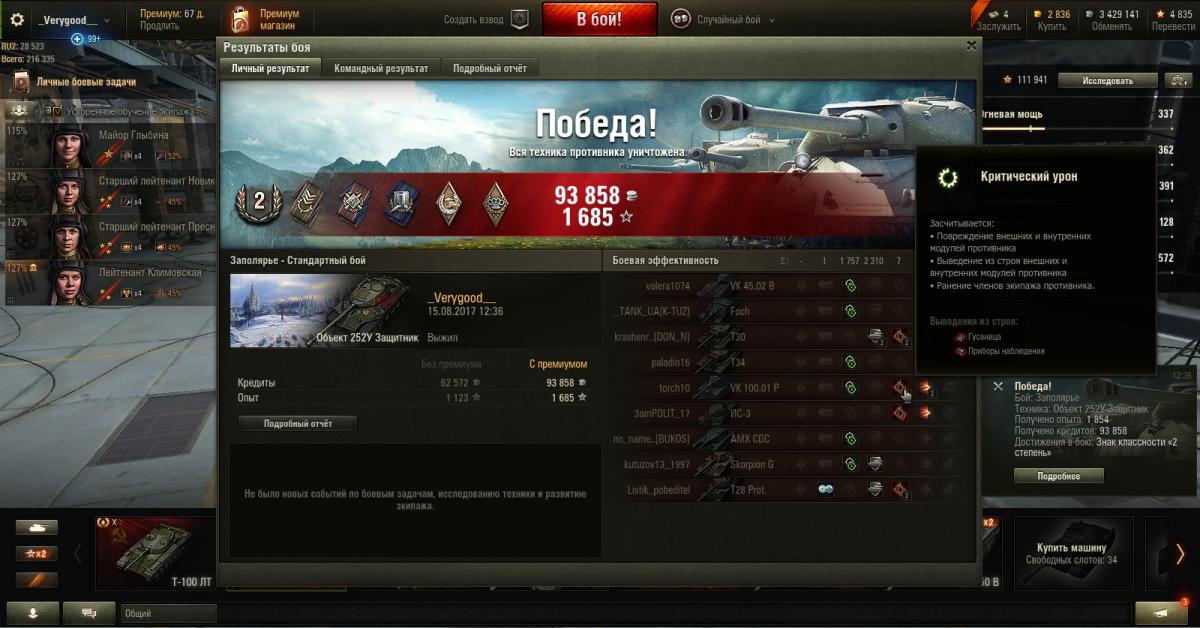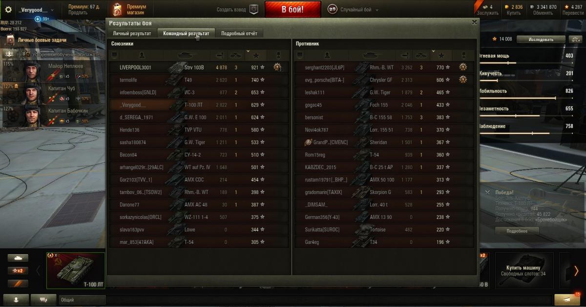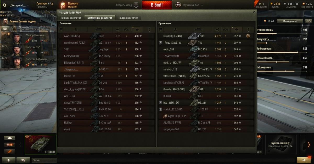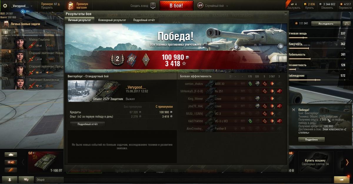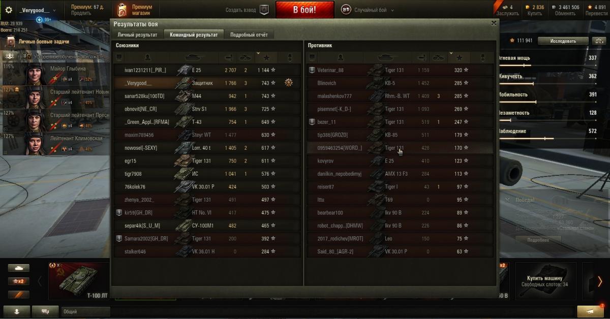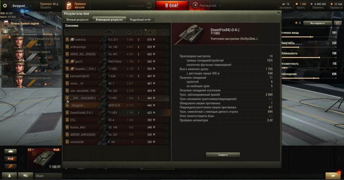 Здравствуйте! Я конечно еще могу понять,что мне дали опыта меньше, чем верхнему т110е5 (хоть и накидал я 3000),но почему нижнему т110е5 дали еще меньше чем мне????Нижний то был более эффективен в бою,чем верхний.Или если раковать,то тебе больше опыта дают????Но если конечно все в пределах нормы,тогда слов нету......