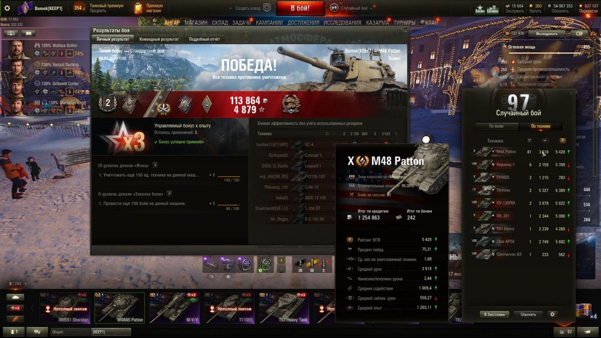 Танк хотя бы урон наносить стал, уменьшение КД улучшило комфорт игры. Но не сильно)). По апу брони тяжело сказать, не сильно обращал внимание, да и стреляли в башню редко. Сразу после апа добил 4%.