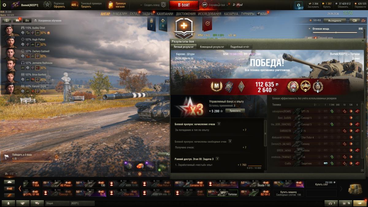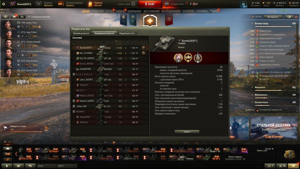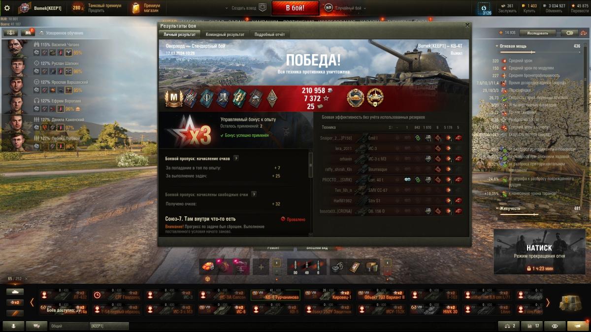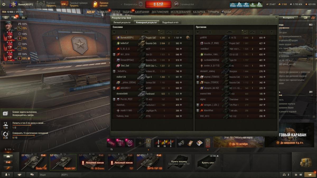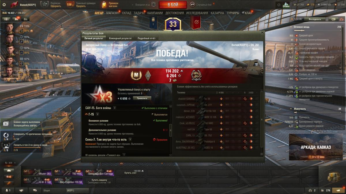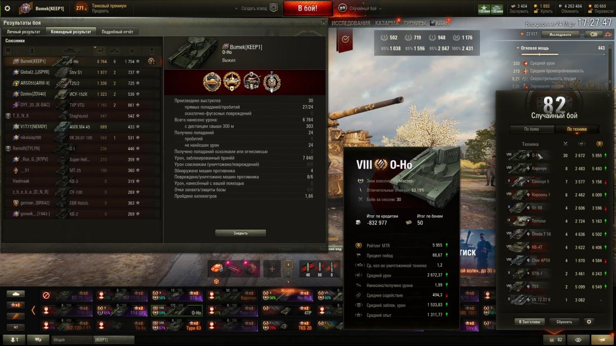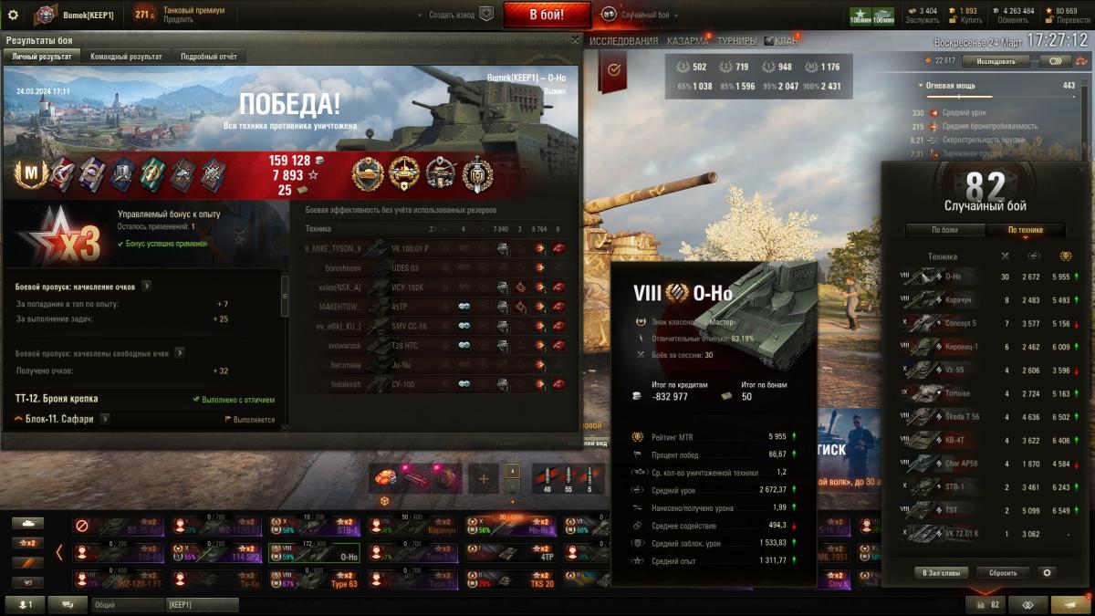 Стряхнем пыль с этой темы). На днях решил перевыполнить с отличием блок-15 на 279 и посмотрел, что на O-Ho нищая планка как по опыту так и на 3 отметки. В итоге понадобилось всего 8 боев на выполнение задачи с отличием. После апа танк стал вполне себе играбелен. В одноуровневых боях способен и танковать и накидывать по 3-4к урона, но чаще всего конечно бои на 2-2.5к. С десятками тяжело, но тут ничего удивительного. В боях против 6-7 уровней чувствует себя превосходно. В общем типичный сверхтяж ближнего боя одного направления с хорошей пушкой, УВНами и лобовой броней. Из оборудования - досылатель, турбина, закалка. Последний бой сегодня как вишенка на торте, набрал на выполнение с отличием ТТ-15 на об. 260, жаль другая задача была активирована)
