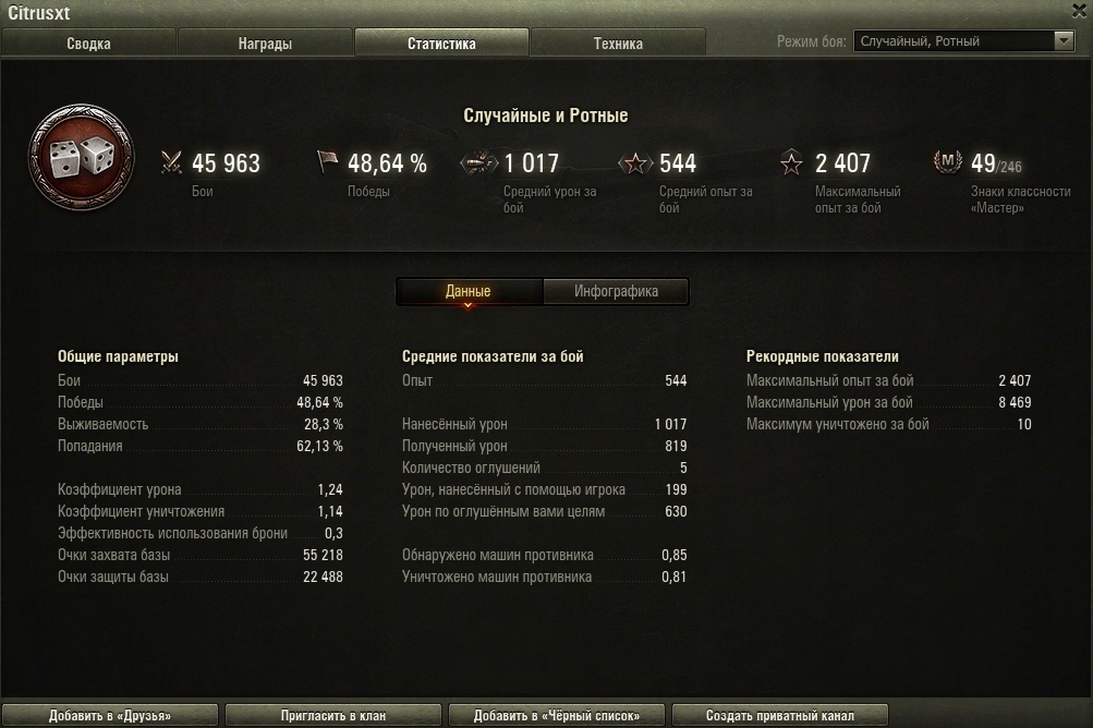 http://cdn-frm-eu.wargaming.net/4.5/style_images/wg/snapback.pngKYKYSHKA_YLETELA (10 авг 2020 - 14:05) писал: РБ очень сильно от везения зависит. Так что тем, кому ты очевидно завидуешь, могло просто повезти с эффективностью.эффективность это очень кривой показатель на него вообще не стоит смотреть, это всего лишь (кол-во полученных шевронов / кол-во боев в рангах) * 100. что ты за 300 боев возьмешь 300 шевронов у тебя будет 100% что ты за 200 боев возьмешь 200 с эффективностью 100% только во втором случае ты действительно эффективнее был нежели в 1,но кто то считает не так. если посчитать что у перца с 65 боев -20 квалификации останется 45 боев, жетонов всего что то около 105 надо что все пройти без их потерь с такой удачей что в среднем у него было чуть больше 2 жетонов за бой, он должен был выиграть лотерею не покупая билет, просто позвонили бы и сказали что он выиграл