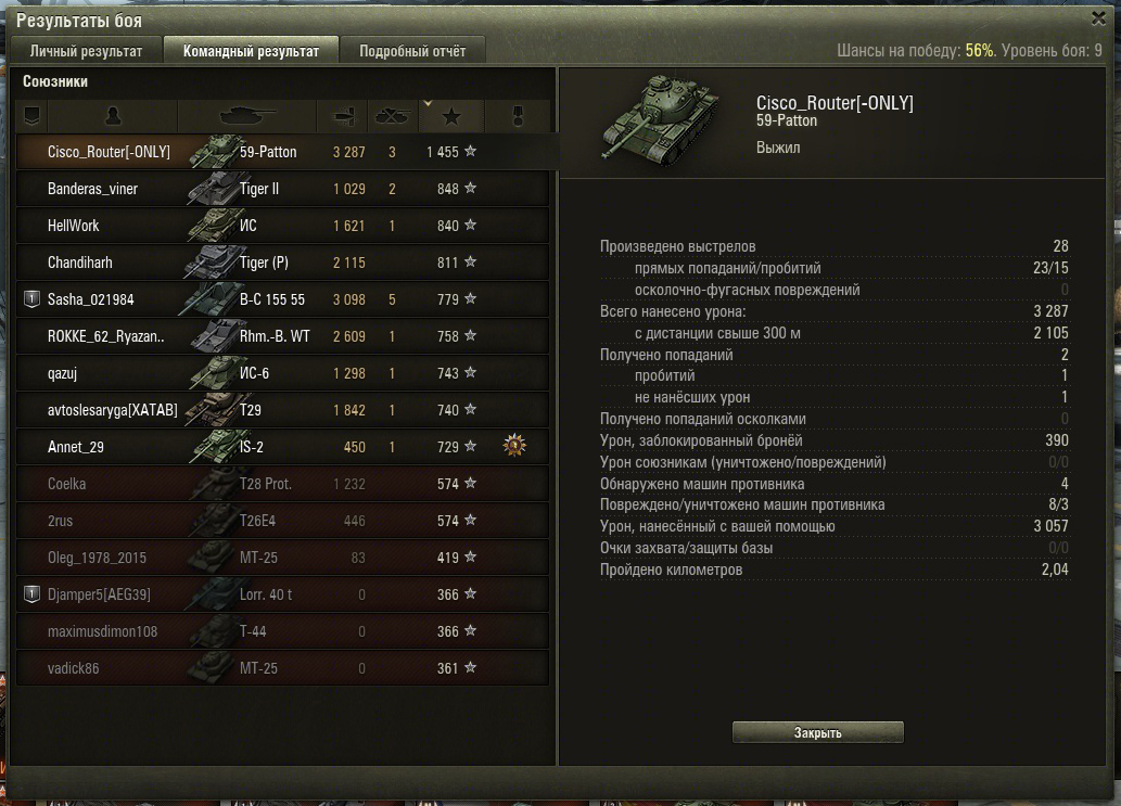 Ну так танк и есть имба (от англ. imbalance - дисбаланс) в прямом смысле этого слова. Купил его для коллекции. Покатался. Заметил одну интересную вещь: при уровне боя 8-9 в команду противника "кидает" с вероятностью более 90% суперперш. Углы УВН роли особой не играют. Пока будете выкатываться на возвышение, заполучите плюх (с лишением большой или большей части здоровья, что может привести к инвалидности) в пулеметно-смотровою башню прежде, чем поймаете врага в прицел. В корпус били только в первый день продаж. Потом все уяснили, что к чему. Выкатывал для снятия звезд и получения доп. опыта в период праздника. UPD. Только сейчас заметил, что у меня на нем средний урон такой же, как на Кроме В и Руди (т.е. 1400+) http://cdn-frm-eu.wargaming.net/4.4/style_emoticons/wot/Smile_amazed.gif UPD2. Не прошло и полгода, как говорится... http://cdn-frm-eu.wargaming.net/wot/ru/uploads/monthly_09_2015/post-29858917-0-35666300-1442613379_thumb.jpghttp://cdn-frm-eu.wargaming.net/wot/ru/uploads/monthly_09_2015/post-29858917-0-02356000-1442613381_thumb.jpghttp://cdn-frm-eu.wargaming.net/wot/ru/uploads/monthly_09_2015/post-29858917-0-38654200-1442613382_thumb.jpg То, что на серебристо-золотистых кумулятивах был - это вполне очевидно, но пробитий даже ими не столько, сколько хотелось бы...