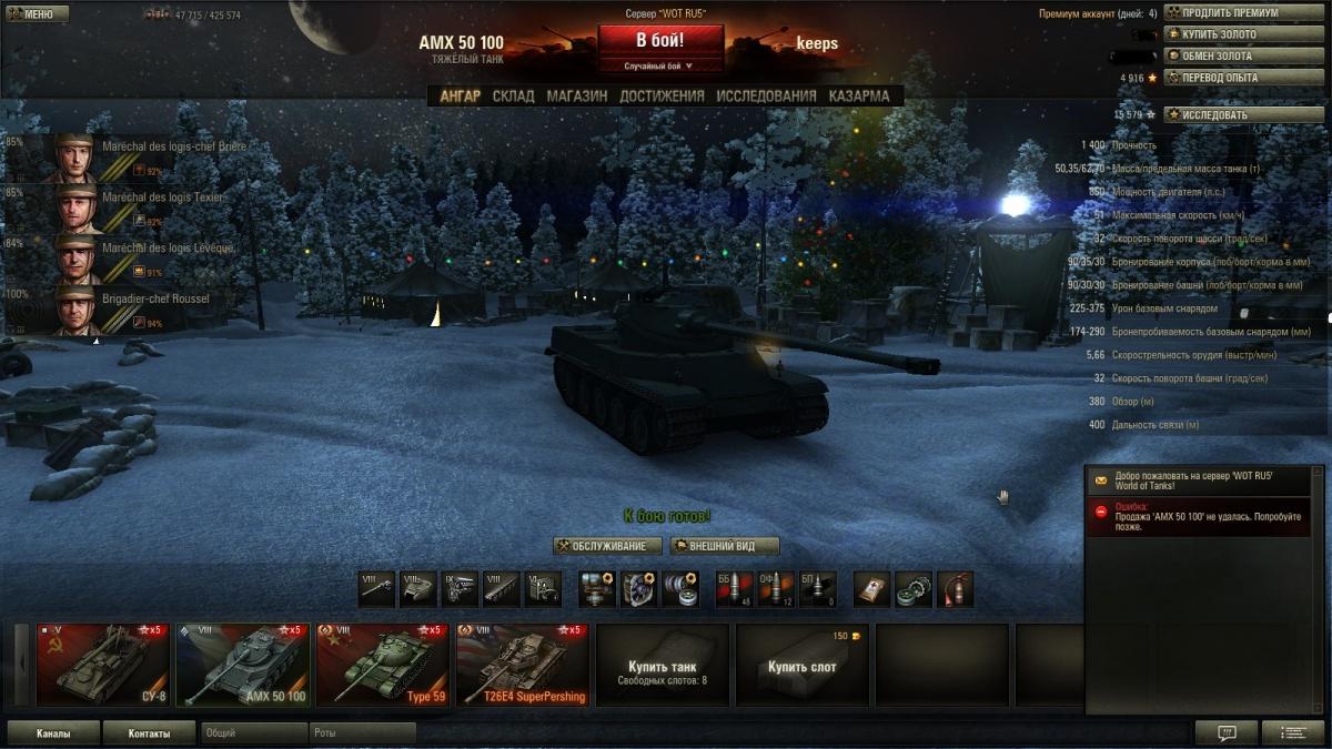 Уже 2-ой день при попытке продать танк появляется такое сообщение : "Продажа 'AMX 50 100' не удалась. Попробуйте позже." Ни какой до этого танк не продавал, лимит продаж не превышал.
