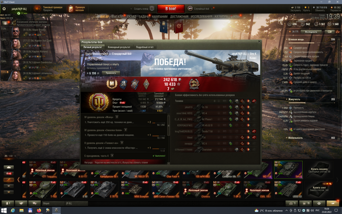 Играть стало комфортно, хоть у меня и стоит там какой-то диковатый набор оборудки: вентиль, досыл и система управления огнем 2 уровня. Единственный минус - ДПМ 2150. Хуже на 9 уровне только у лоры 50т. из того, что у меня в ангаре