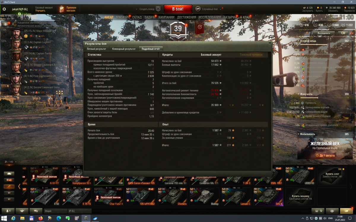 Ничего так танчик, отдал за него 744т. свободки, 22млн. серы и 100 дней према, так что вроде как халява, может позжее поиграю, когда их в рандоме поменьше будет :-)