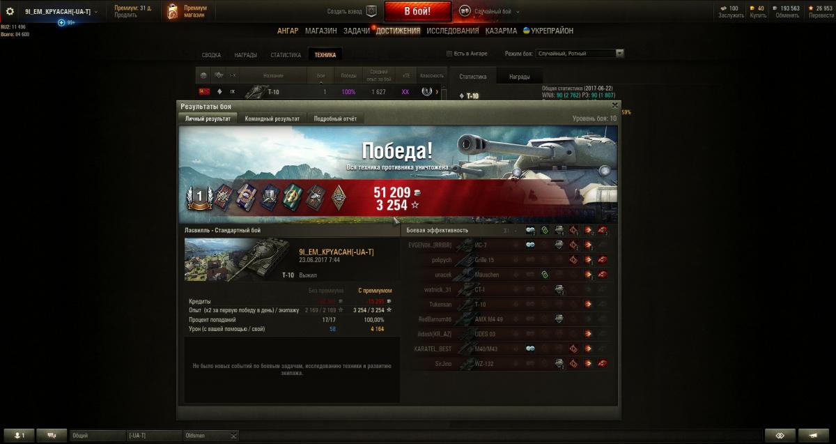 Первый раз выкатил в первый бой на Т-10 (все пруфы ниже) Разве я не должен был попасть в топ против 9? *На скрине видны продамаженные противники ИС-7 и Гриль*