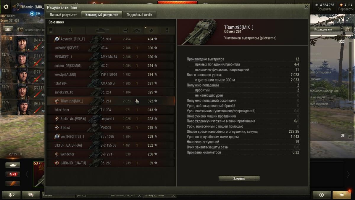 2. Если долго смотреть на результаты боя, можно увидеть что у него нет фрагов