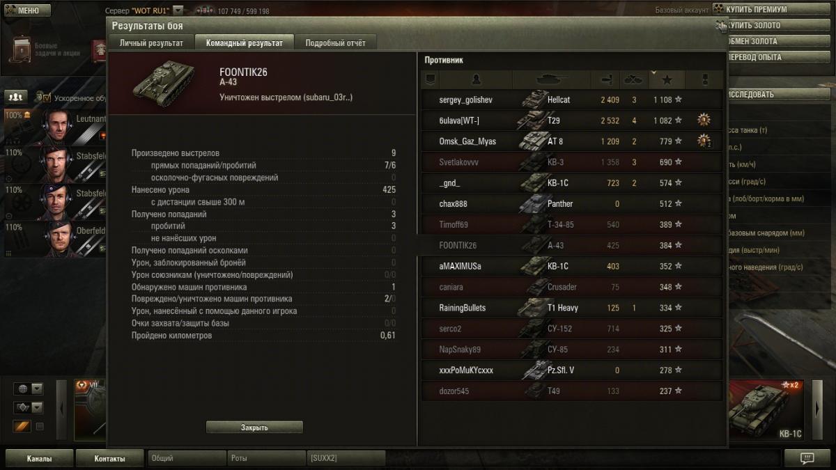На,твой квас нанес урон только а-43,который 6 лвла. http://cdn-frm-eu.wargaming.net/wot/ru/uploads/monthly_06_2014/post-22738737-0-67017900-1402936678_thumb.jpg И да,реплеи не пишу.Зачем?SSD не дешевая вещь,надо беречь.Хотя куда тебе невоспитанному знать,что это такое Я тут подумал,что ты своим неокрепшим умом пораскинуть не сможешь,и подстраховался.Над а-43 отображен ник того,кто его убил.Это наш квас.По нему было сделано 3 выстрела.Все от кваса.Квас стрелял только в а-43 И ТОЛЬКО ЕГО И УБИЛ.ТАк как в его статистике указано 1/1.Что и так ясно.Это для умников,которые твердят про настрел на уровень выше.Квас наоборот не стрелял по 7,а в одну шестерку