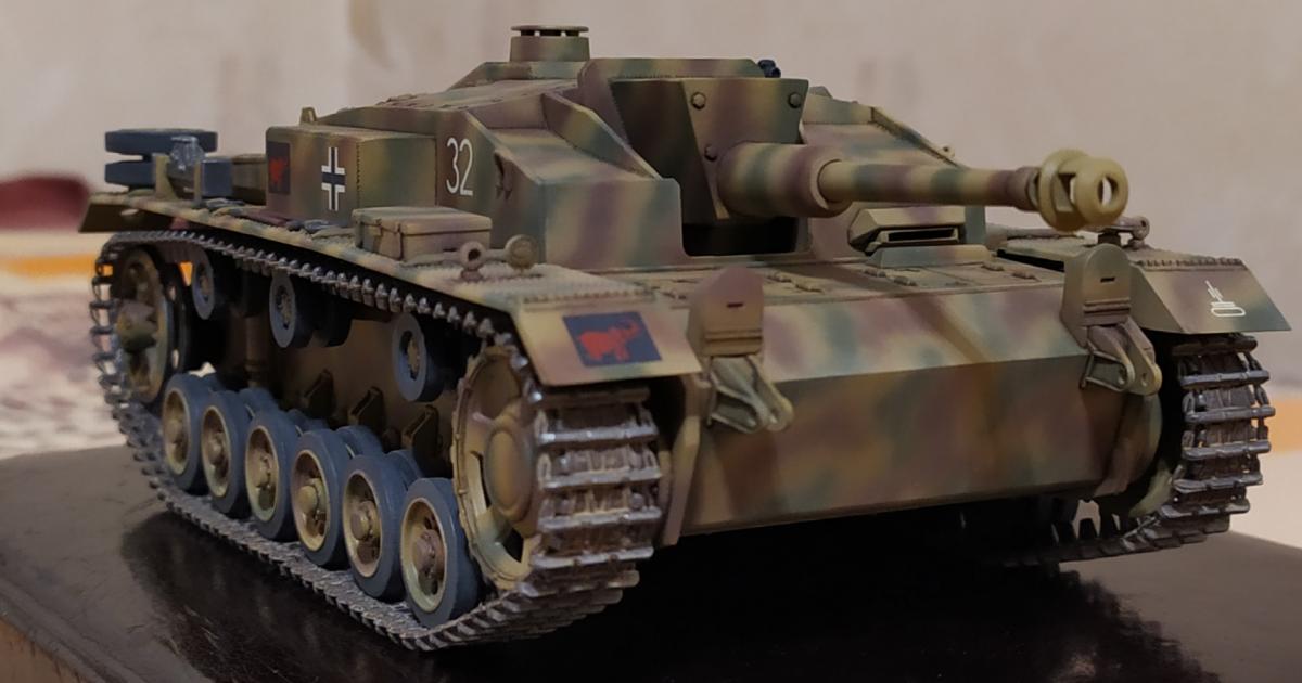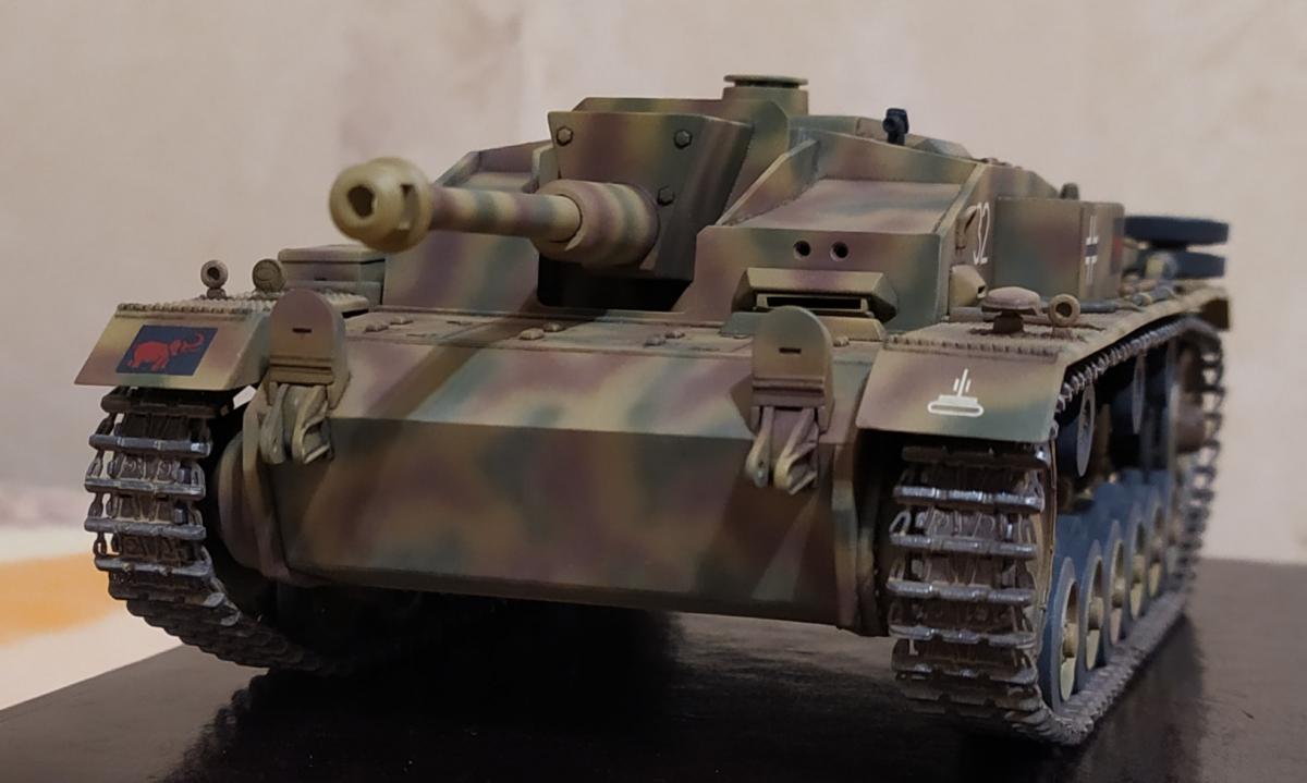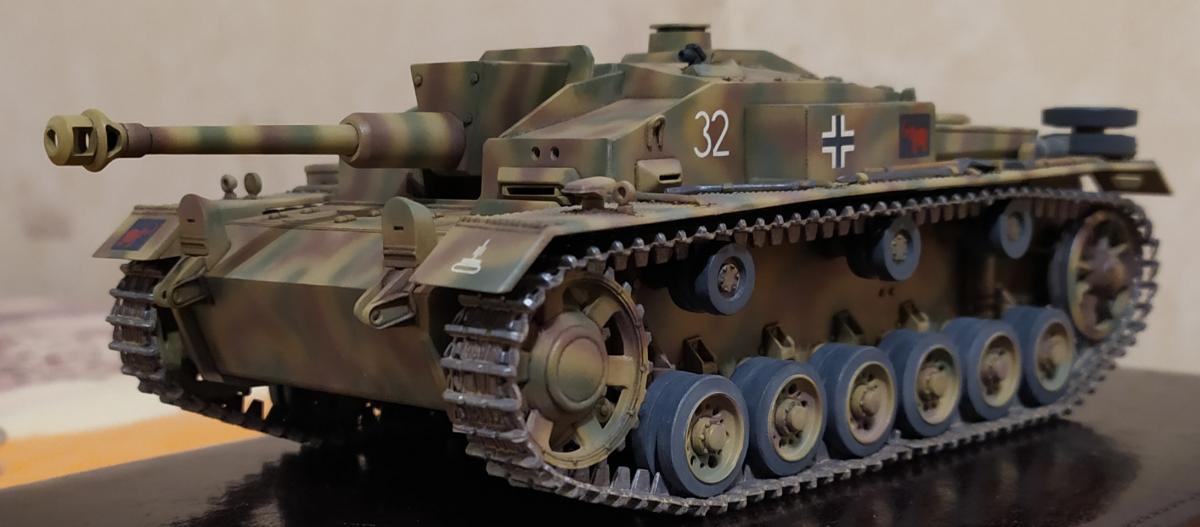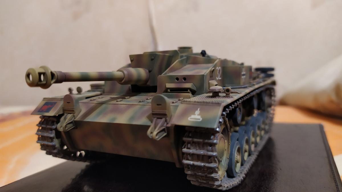 Старая модель штуга от Звезды,ужасное качество литья,каждую деталь буквально заново приходилось выпиливать из литника,все было в облое!Не покупайте этот набор,замучаетесь пилить!Применял краски Валехо,Тамия,Мастер акрил от Звезды,смывка Тамия и АКинтерактив.