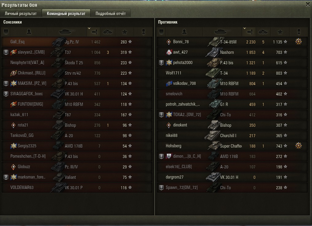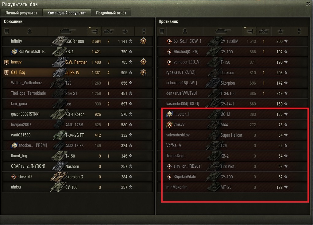 http://cdn-frm-eu.wargaming.net/4.5/style_images/wg/snapback.pngMr_Saymon_Smit (12 янв 2021 - 18:14) писал: Делай как на су85б и не будет качалей. О хетцер тоже подходит полагаешь? )))) я вот не уверен что это поможет, ибо часто играю в песке 3-6 лвл посмотри на пики макс почти совпадают. и низшие точки тоже )) я уверен на 146% что завтра у меня будет новая серия... и буду я танковать или бутерброд жевать прихлебывая чаек, все равно победюм ))) мне как и и тебе (регистрация в игре с 2013) есть с чем сравнивать... и пускай будет мое мнение субъективным, но в 2011-2015 не было таких жутких дисбалансов в игре по командам )))